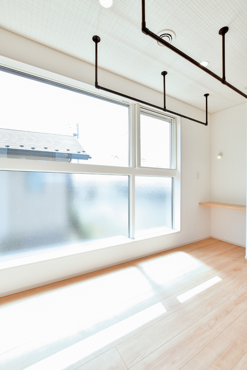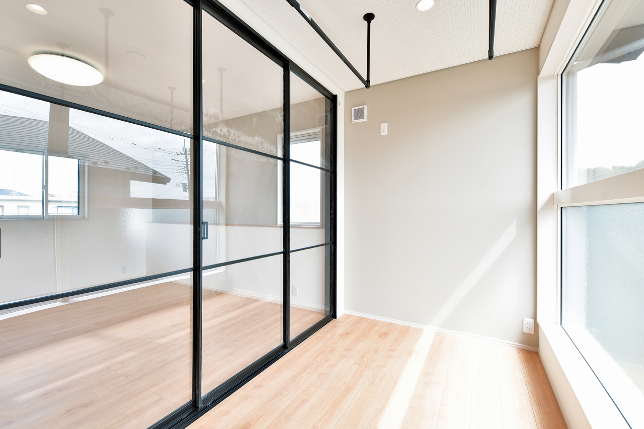 時間や天候問わず洗濯物が干せるサンルーム"ソラリティ"を寝室の隣に設けた家