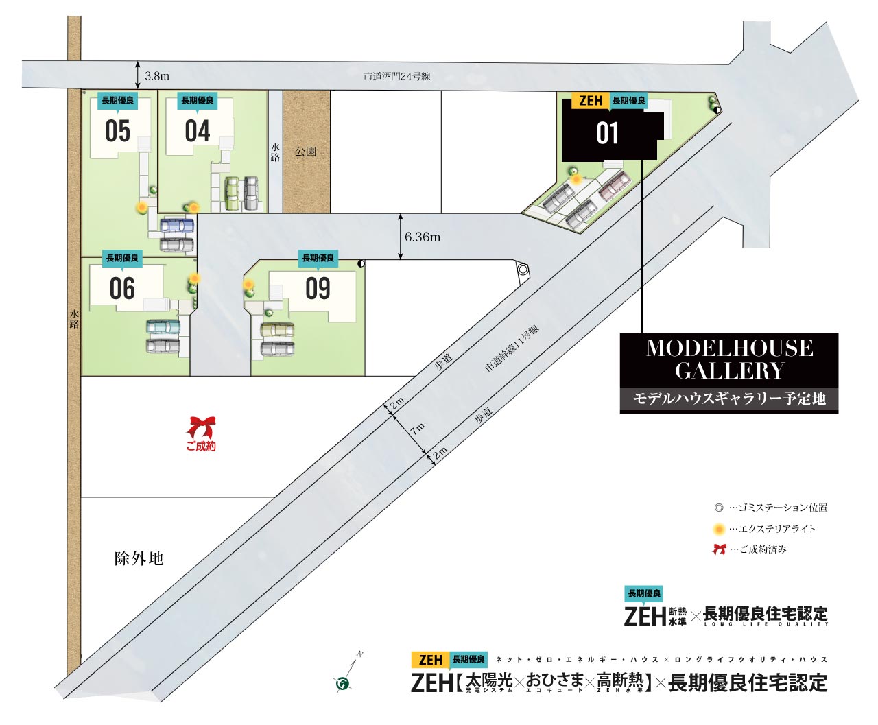 | 道路 | 3.8m、6.36m、11m幅員アスファルト舗装 |