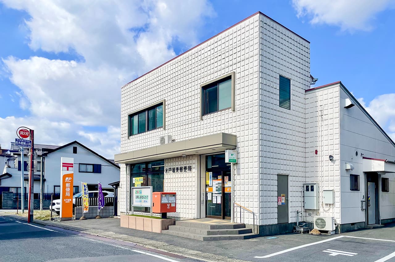 | 交通 | JR常磐線・JR水郡線・鹿島臨海鉄道「水戸」駅より徒歩 23分( 約1,800m ) 〜 徒歩 23分( 約1,820m ) 茨城交通バス「城東小学校前」停留所より徒歩 4分( 約300m ) 〜 徒歩 4分( 約320m ) 関東鉄道バス・茨城交通バス「トッパン前」停留所より徒歩 7分( 約500m ) 〜 徒歩 7分( 約520m ) |