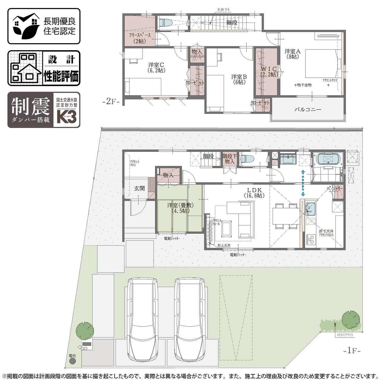 ウォークインクローゼットやフリースペースなど生活動線の各所に収納スペースを備えた住まい