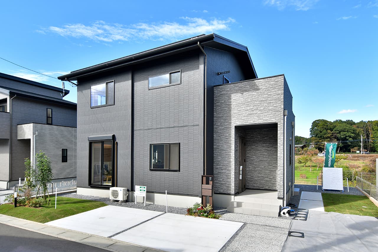 テラスへと視線が抜ける玄関ホールが、心地よい開放感で迎える住まい