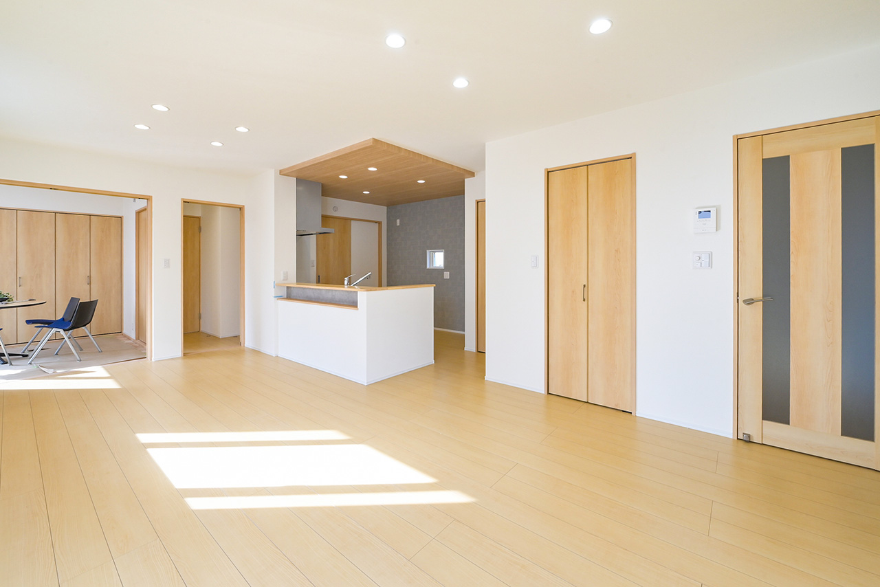 リビングそばに、家族がみんなが使いやすいたっぷり収納できるストレージをご用意。日用品や生活雑貨はもちろん、お子様のおもちゃなど、様々な収納に活用できます。日常の収納以外にも、来客時には、散らかった雑誌やおもちゃなども手早く片づける事ができます。