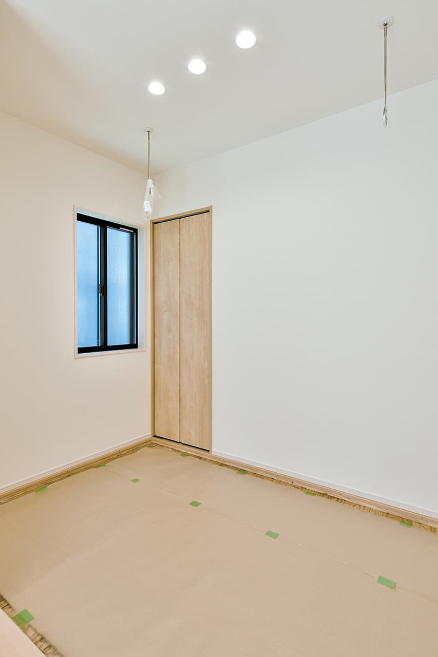 LDKと緩やかに繋がるタタミコーナー。柔らかい畳の上でお昼寝したり、子どもと寝そべって本を読み聞かせしたり、時にはお座敷スタイルで一味違うディナーを楽しんだり。ちょっと贅沢な時間を楽しめる個性的な和モダン空間です。