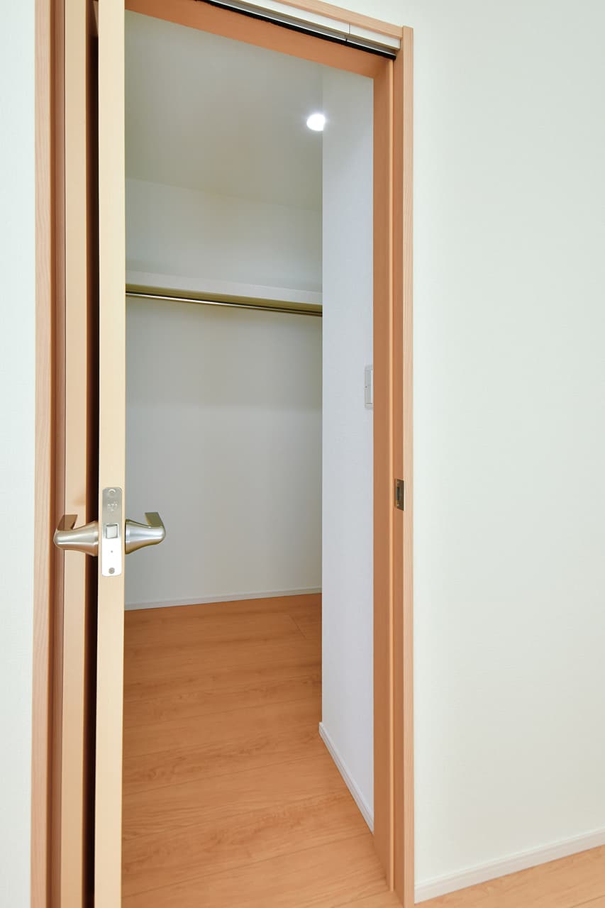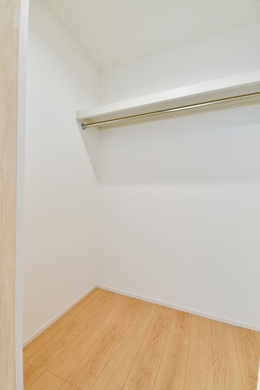 ご夫婦や子ども達の衣類をたっぷりしまえる大容量のウォークインクローゼット。季節の衣類から鞄や帽子などの小物までたっぷり保管可能。ウォークインタイプなので衣類の出し入れや整理整頓もスムーズに行えます。
