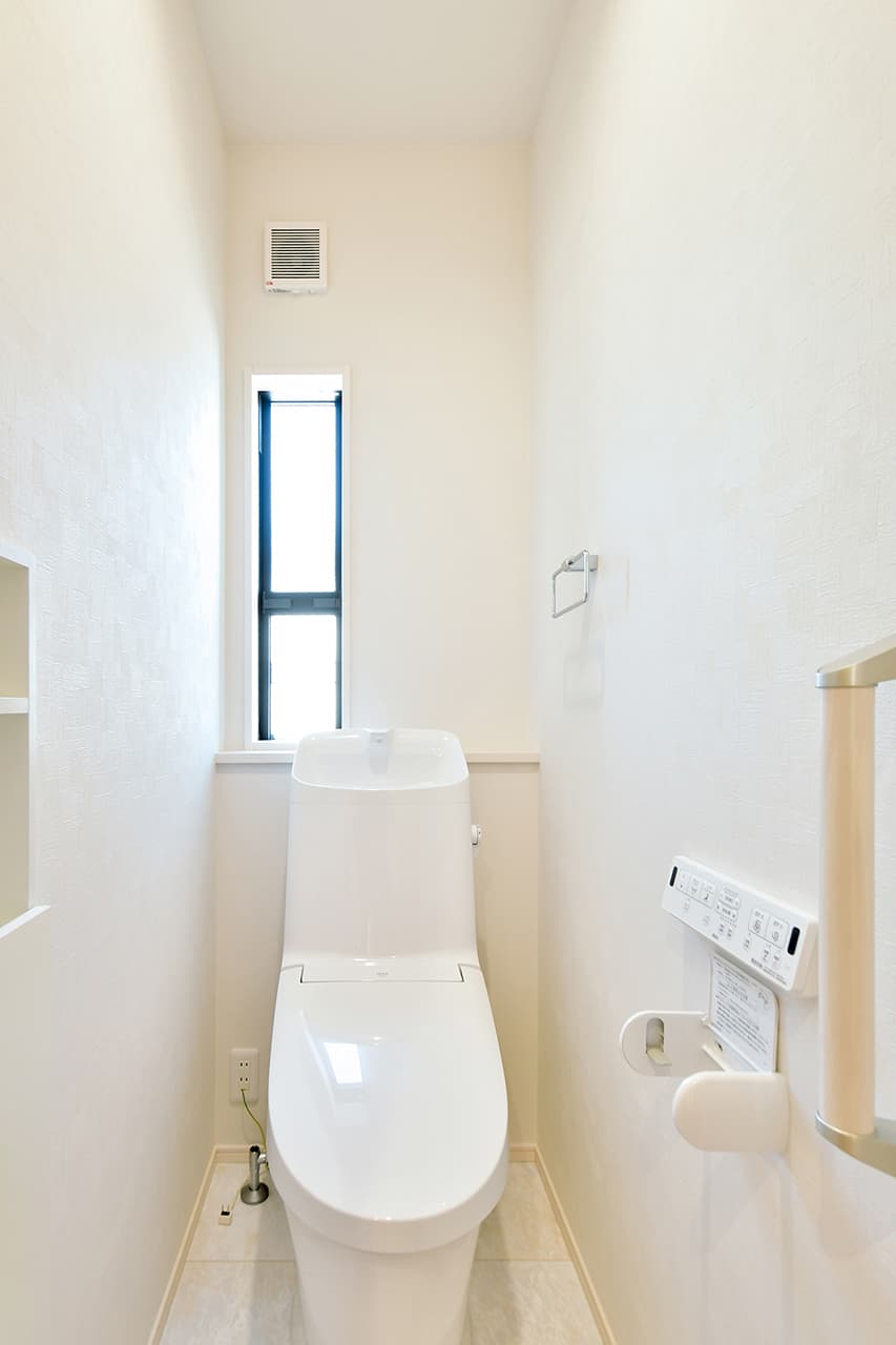 トイレや洗面脱衣室などの開口部には、防犯用の面格子付窓や、侵入できない小さな窓を採用し防犯性を高めています。