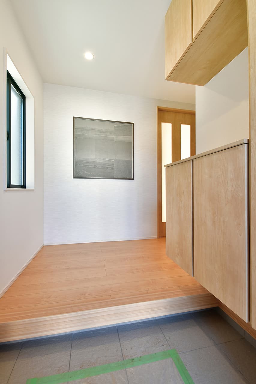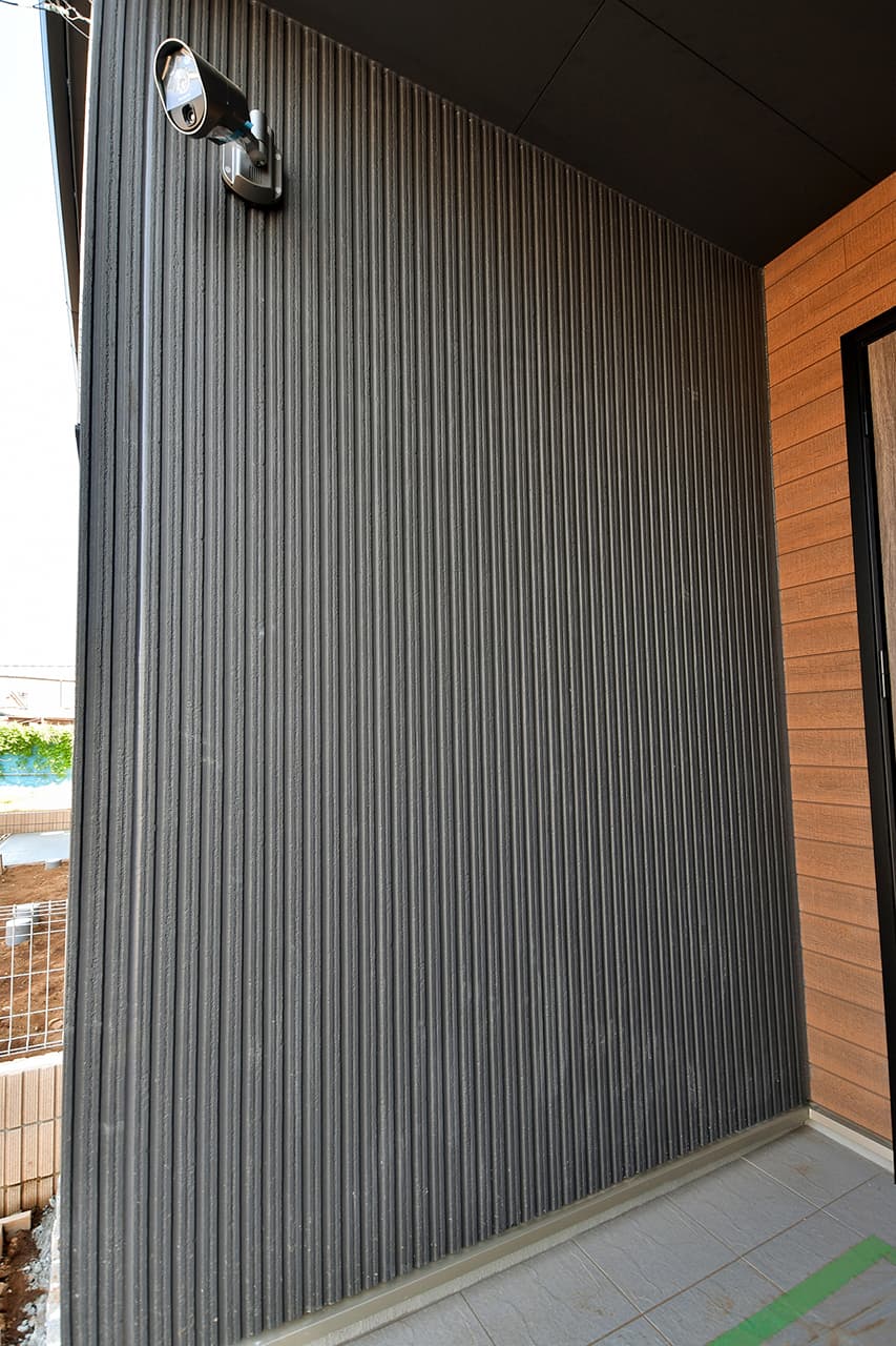 人の動きを感知して自動的に点灯する人感センサー付玄関照明を採用しました。ご家族の帰宅を明るく迎えるだけでなく、不意なライトの光が侵入者への警告になります。