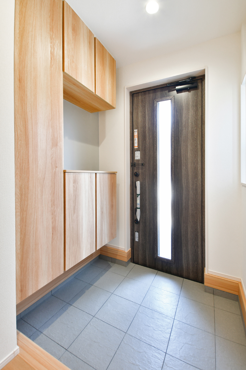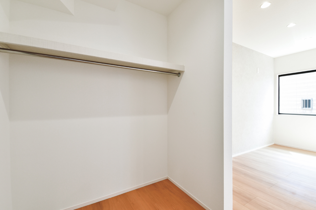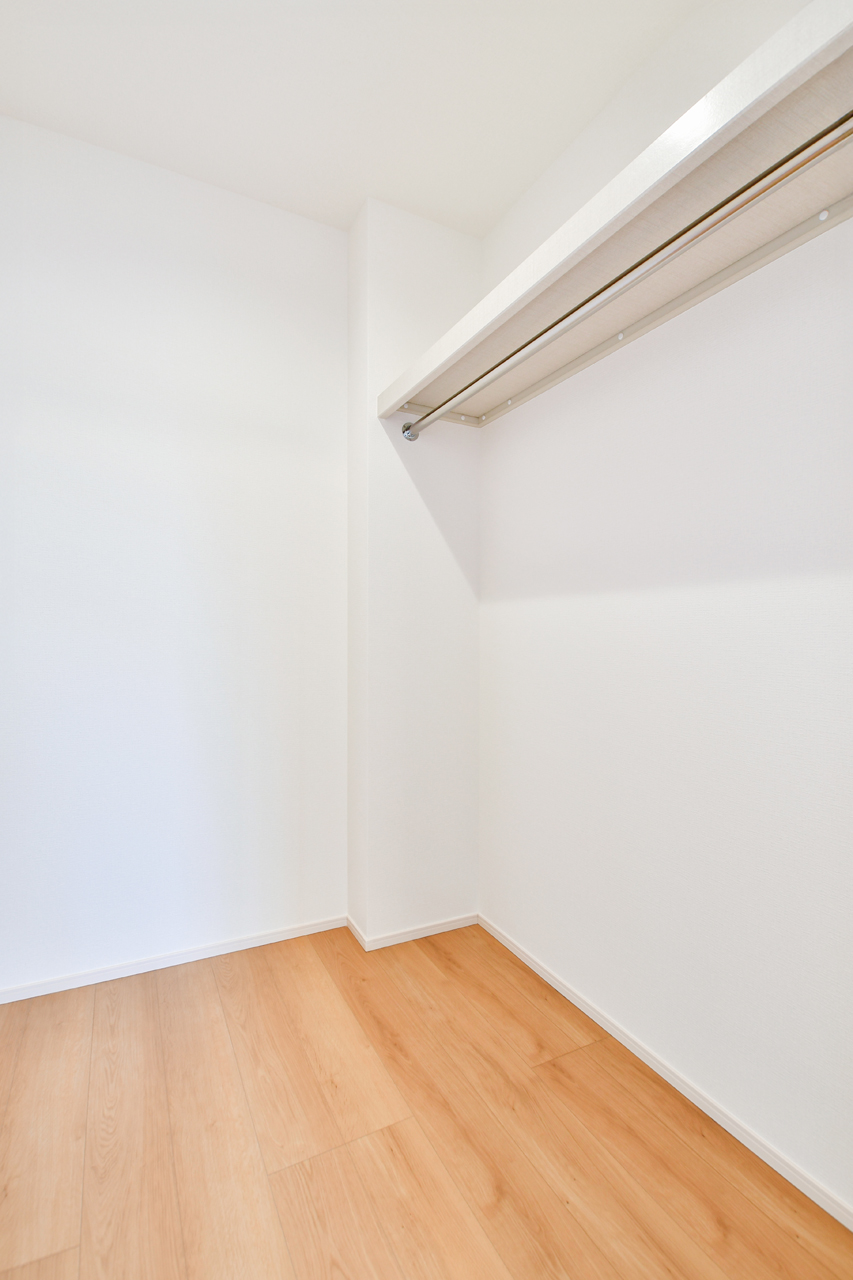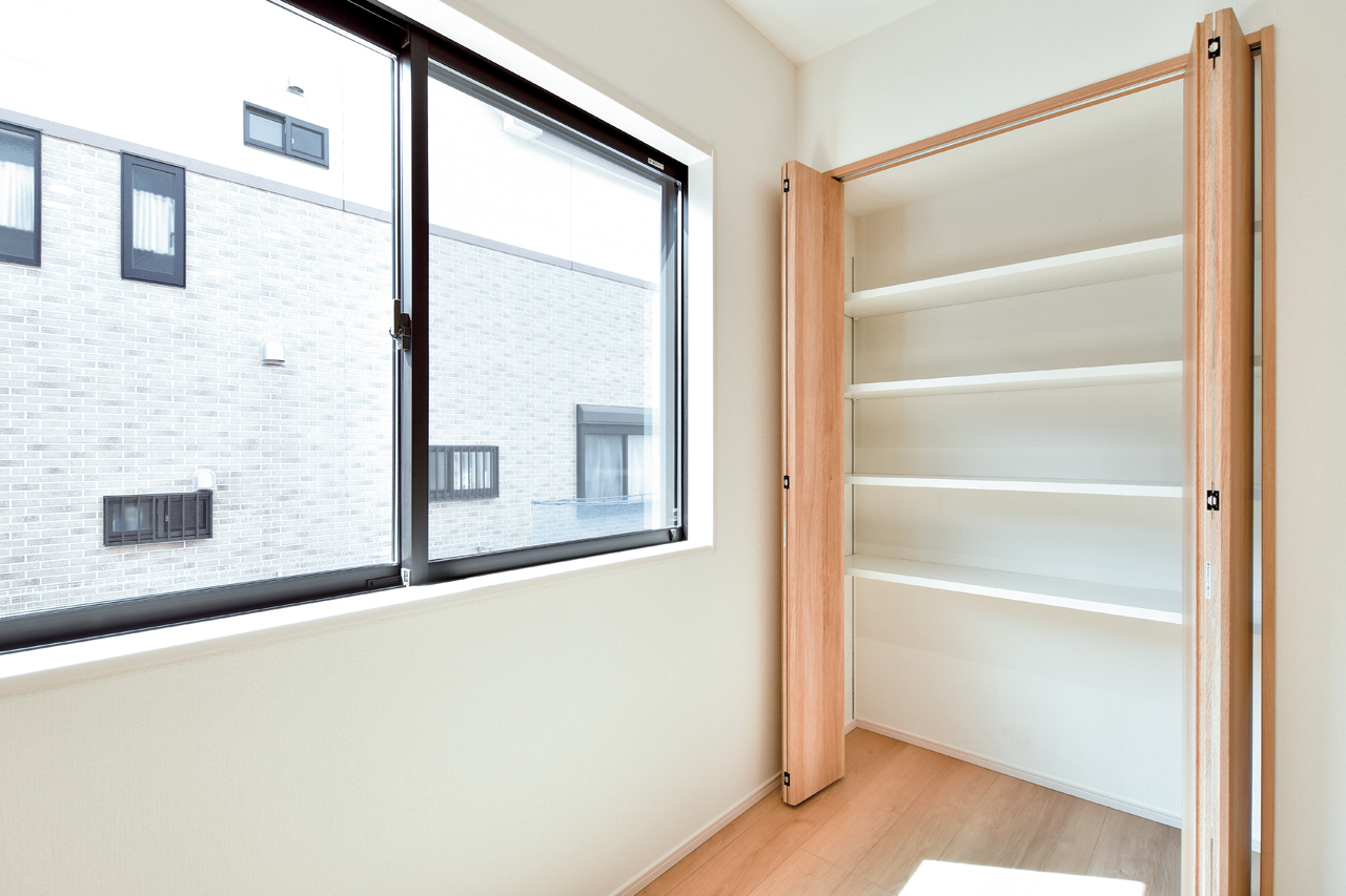 1階・2階のホールやリビングのそばに、用途やライフスタイルに合わせて自由にお使いいただける大容量の収納スペースをご用意しました。季節の衣類から鞄などの小物まで、たっぷりまとめて収納できます。
