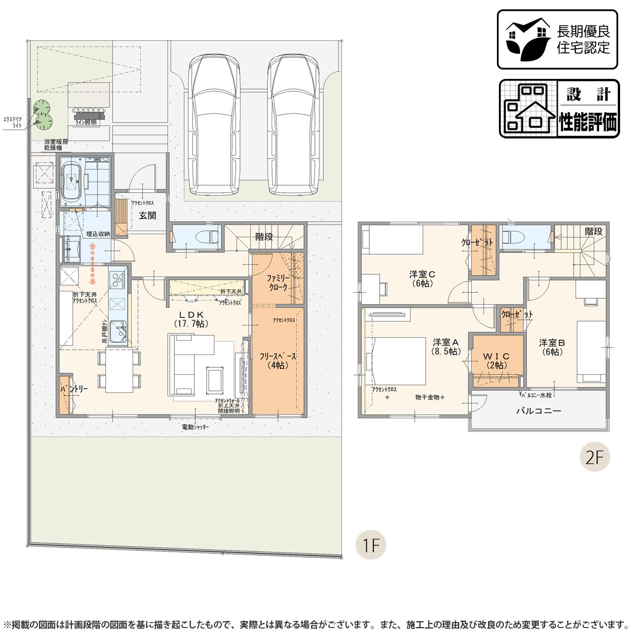 通勤やレジャーなど、ライフスタイルを広げてくれるカースペースを2台分確保しました。来客用の駐車スペースとしても最適です。