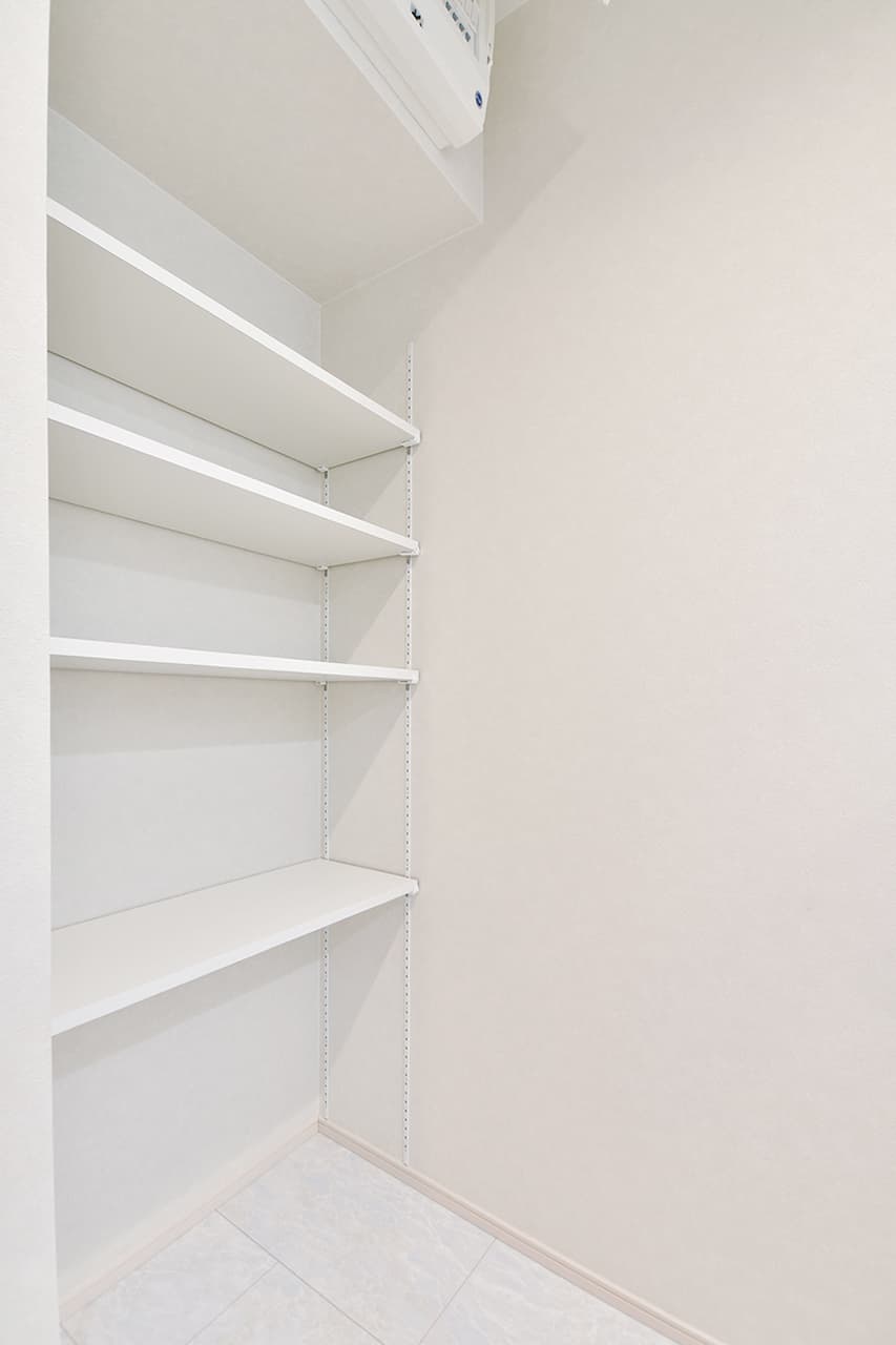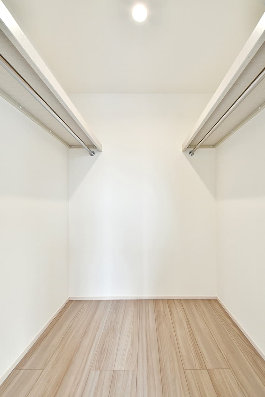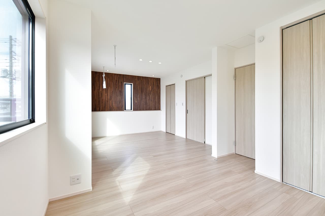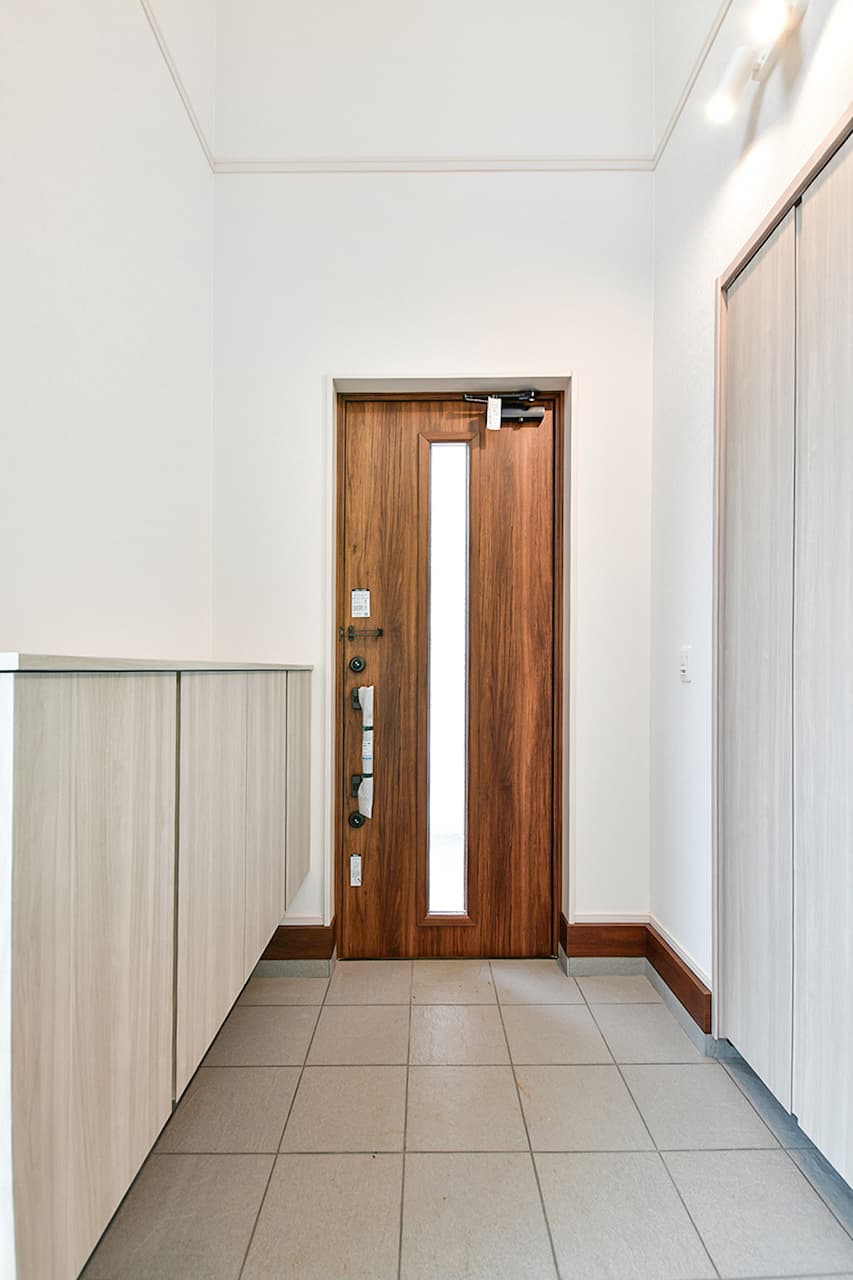 のびのびとした心地よさを生み出す玄関ホールの吹き抜け。縦へと伸びる空間の変化と、上部から導かれた光が、ご家族や訪れるゲストをあふれる開放感とともにお迎えします。