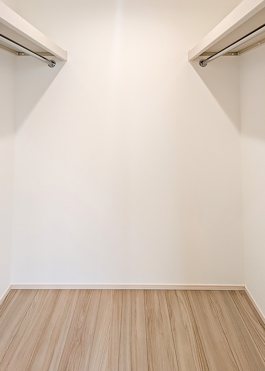 のびのびとした心地よさを生み出す玄関ホールの吹抜。縦へと伸びる空間の変化と、上部から導かれた光が、ご家族や訪れるゲストをあふれる開放感とともにお迎えします。