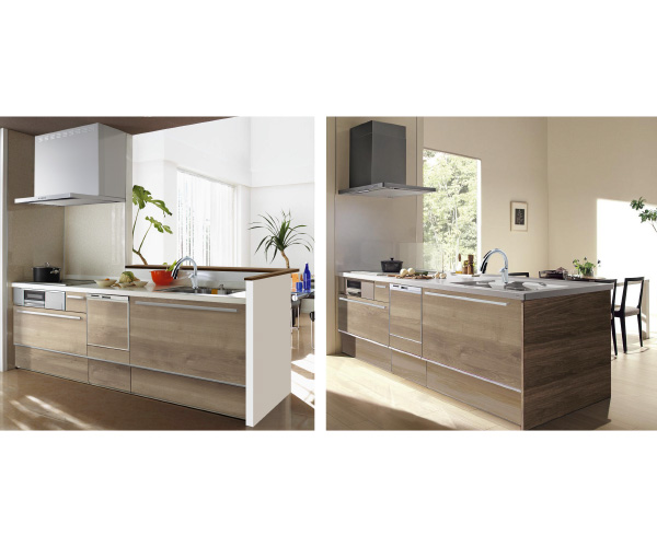 家族でのコミュニケーションがとれる対面型システムキッチンです。横一列にシンクとコンロをまとめたシンプルな形です。動きやすさとスタイリッシュなデザインが魅力です。