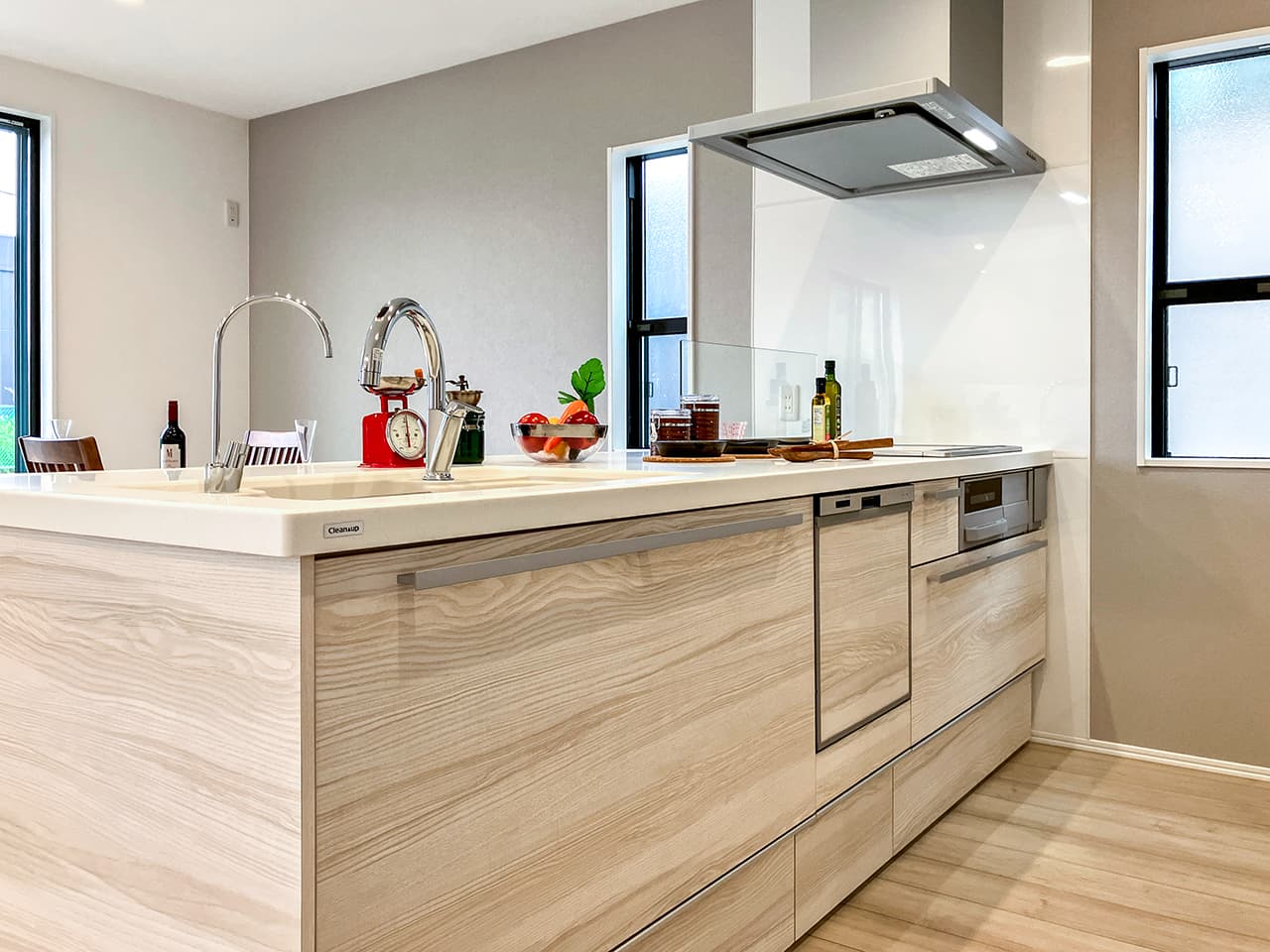 ビルトインタイプ食器洗い乾燥機なら、カウンター上はいつもすっきりで、今まで手洗いにかけていた時間をご家族との時間に使えます。
