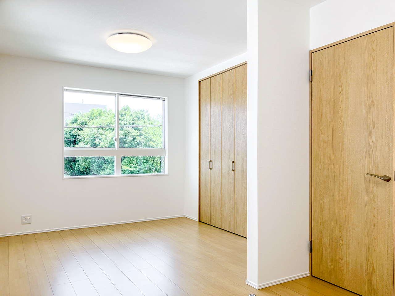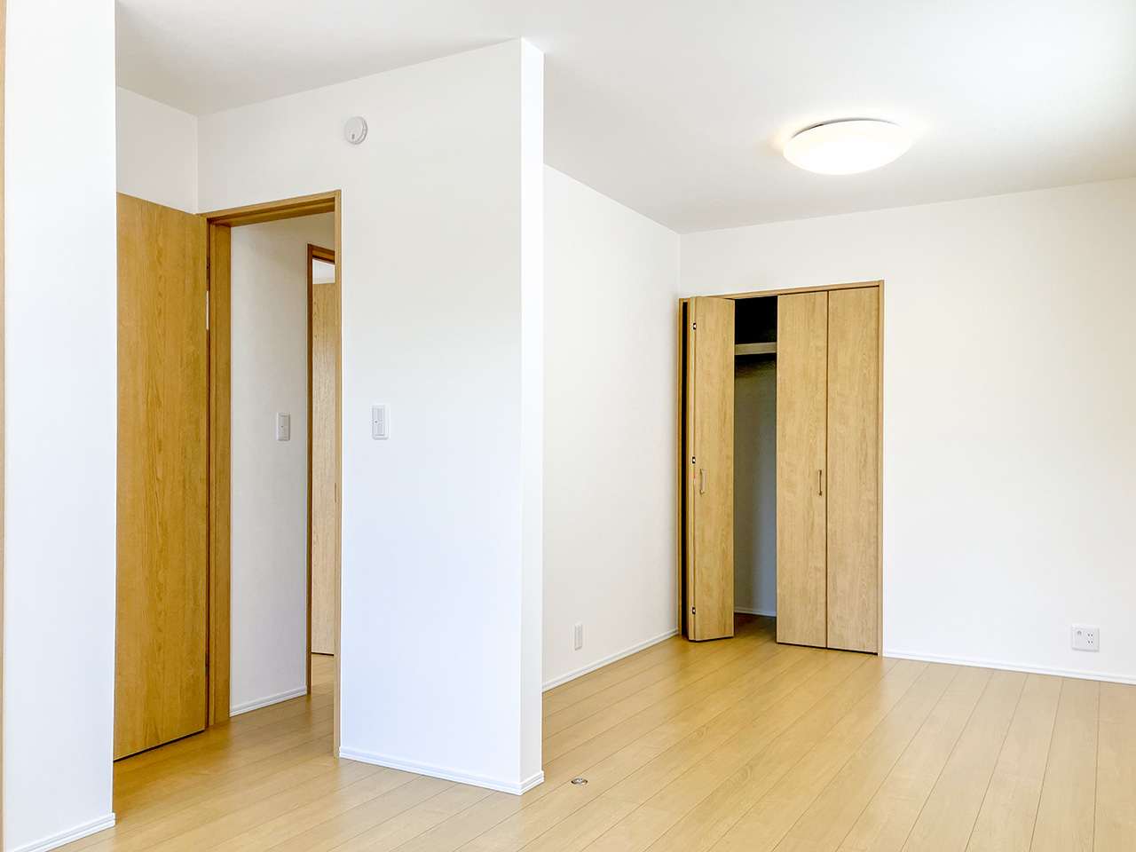 2つの空間に間仕切り可能な、広々とした2階2ドア1ルーム。子供が生まれる前、赤ちゃんが生まれてから、そして大きくなって個室を持つようになるまで対応。子ども達が独立したら広々としたご夫婦の書斎や趣味の部屋にも。ご家族の成長といっしょに変わっていく自由な家づくりが可能です。※間仕切り壁の設置は有料オプションとなります。
