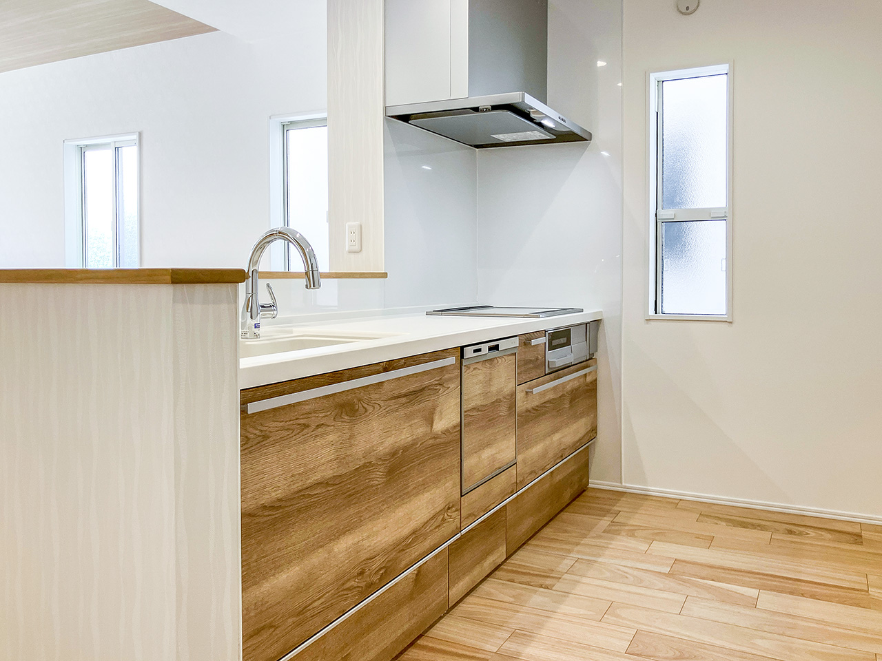 ビルトインタイプ食器洗い乾燥機なら、カウンター上はいつもすっきりで、今まで手洗いにかけていた時間をご家族との時間に使えます。