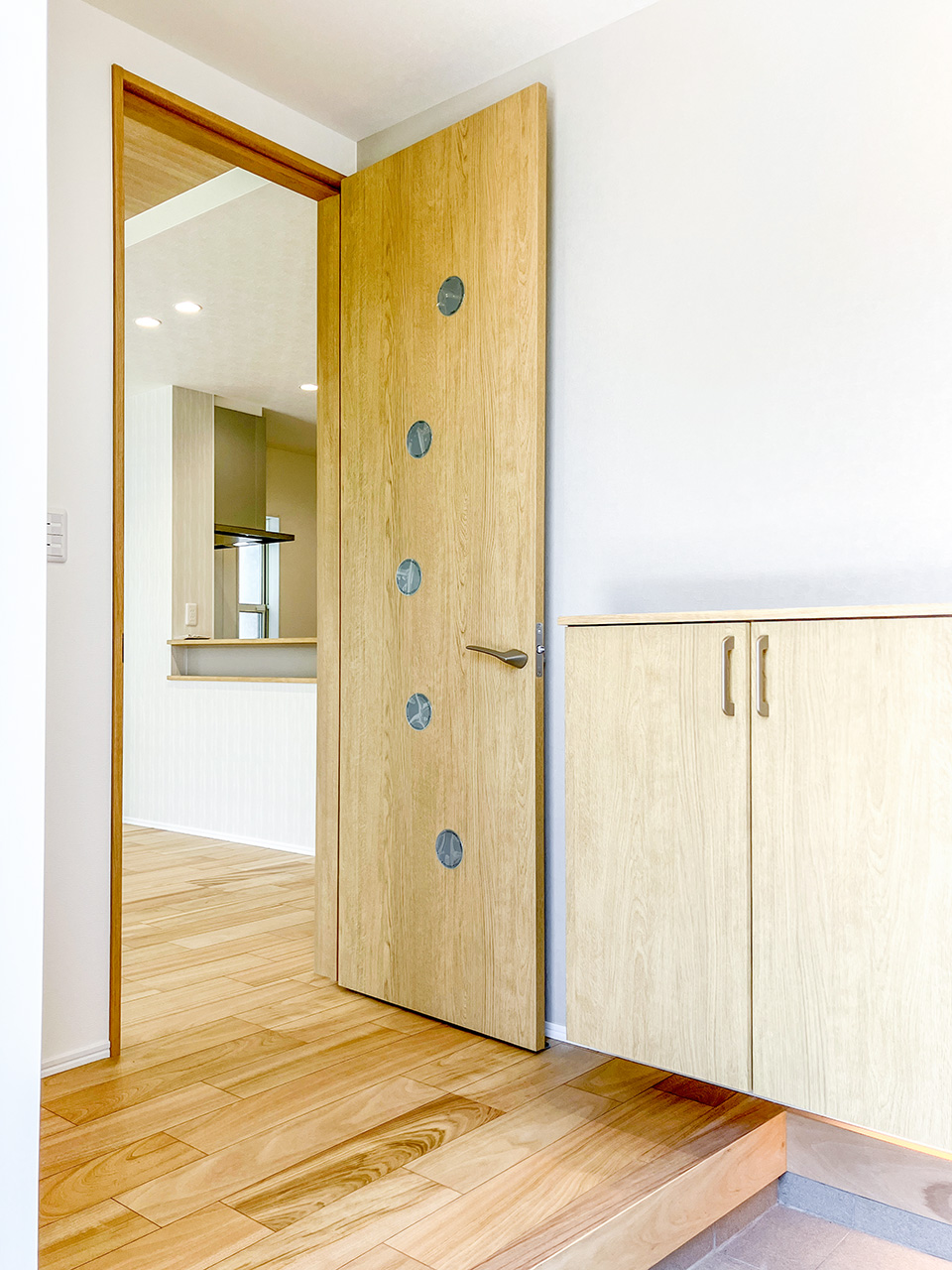 2階へ向かう際に、自然とリビングを通るよう設計された「リビングアクセス階段」。2階のプライベートな空間とパブリックなLDKを程よい距離感で結び、親子のコミュニケーションを優しく後押しします。