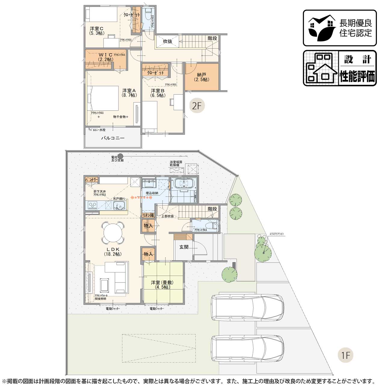 通勤やレジャーなど、ライフスタイルを広げてくれるカースペースを2台分確保しました。来客用の駐車スペースとしても最適です。