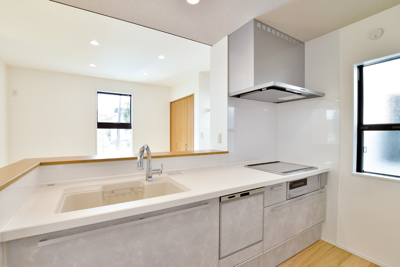 ビルトインタイプ食器洗い乾燥機なら、カウンター上はいつもすっきりで、今まで手洗いにかけていた時間をご家族との時間に使えます。