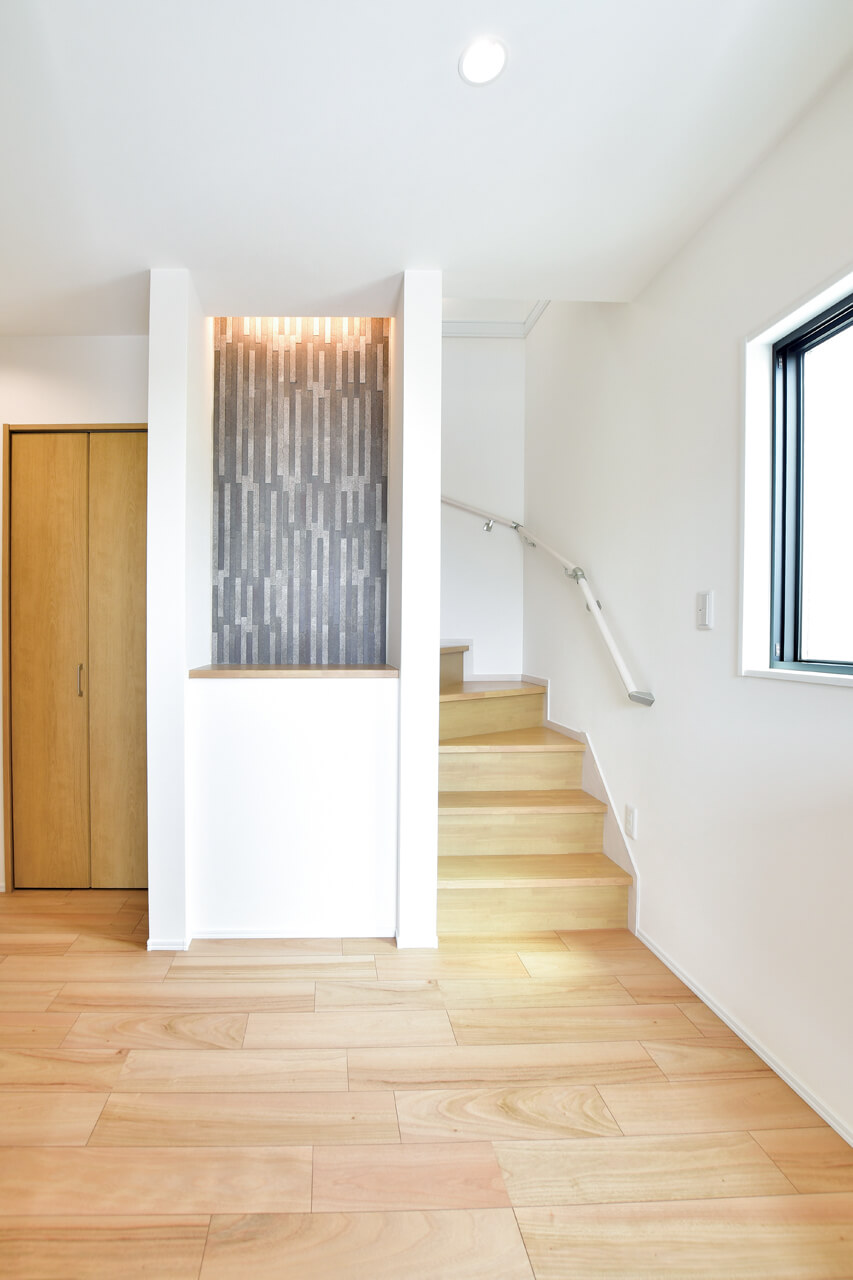 階段での転倒は思わぬけがの元となります。グランディハウスでは、ゆるやかな昇降しやすい階段とし、手すりを標準設置しています。