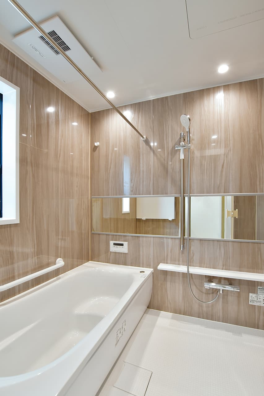 雨の日も気にせず洗濯物が浴室内に干せる浴室換気乾燥暖房機を標準装備。時間も天気も気にせず干せるからとても便利。また、浴室のジメジメした環境から発生するカビも抑えることができます。