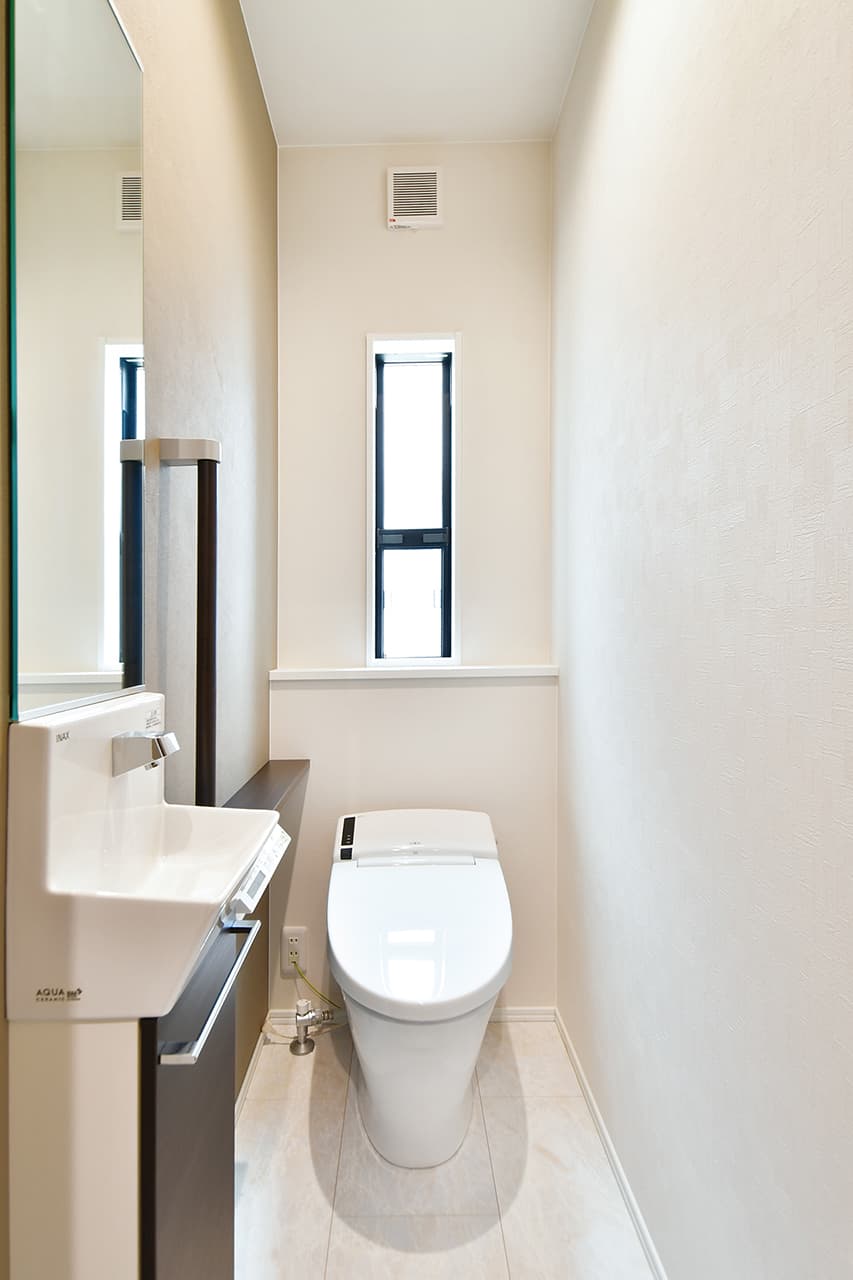 トイレや洗面脱衣室などの開口部には、防犯用の面格子付窓や、侵入できない小さな窓を採用し防犯性を高めています。