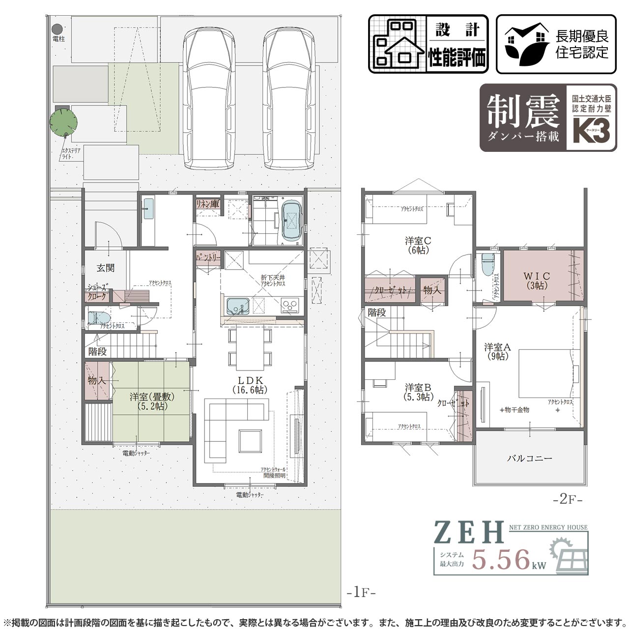 ※販売価格には建物の消費税分が含まれます。建ぺい率 60% 容積率 200% 敷地面積 186.10㎡(56.29坪) 203.74㎡(61.63坪) 建物面積 112.61㎡(34.00坪) 115.37㎡(34.83坪) 構造 木造軸組工法2階建 建築確認番号 第R07SHC119037号(2025年10月2日) 他 建物完成年月 2026年2月下旬予定