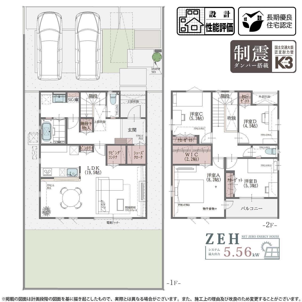 ※販売価格には建物の消費税分が含まれます。建ぺい率 60% 容積率 200% 敷地面積 186.10㎡(56.29坪) 203.74㎡(61.63坪) 建物面積 112.61㎡(34.00坪) 115.37㎡(34.83坪) 構造 木造軸組工法2階建 建築確認番号 第R07SHC119037号(2025年10月2日) 他 建物完成年月 2026年2月下旬予定