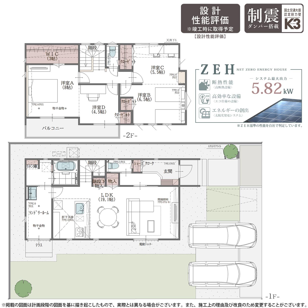 19.1帖の広々LDKやランドリールームなど開放感と快適性を兼ねた住まい