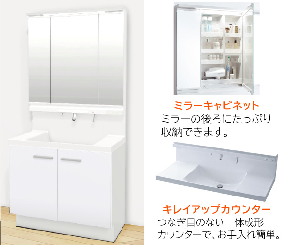 耐久性に優れた、美しくなめらかな質感の人工大理石。すき間のない「シームレス接合」でお手入れ簡単。