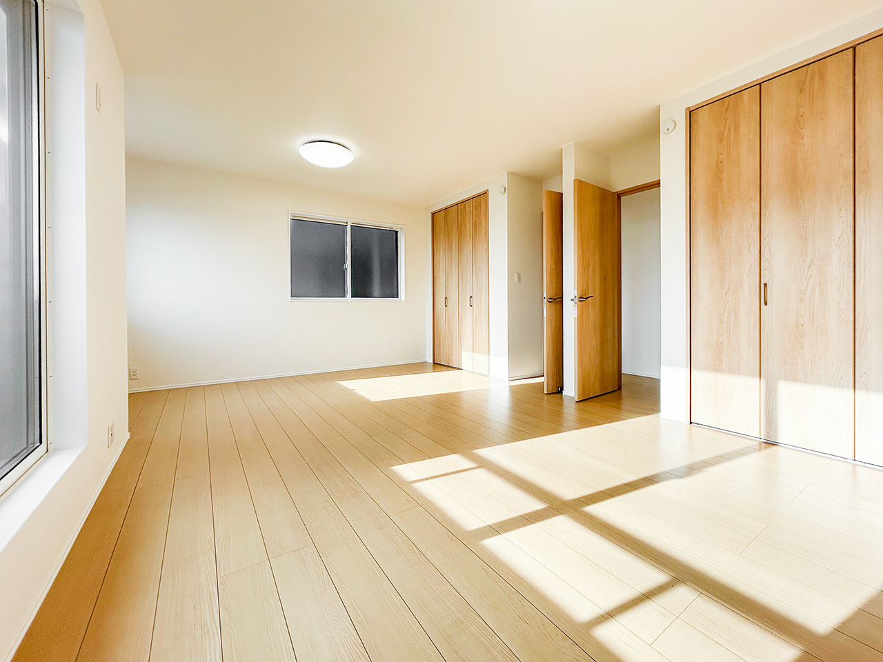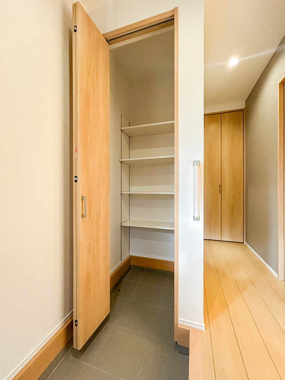 ご夫婦や子ども達の衣類をたっぷりしまえる大容量のウォークインクローゼット。季節の衣類から鞄や帽子などの小物までたっぷり保管可能。ウォークインタイプなので衣類の出し入れや整理整頓もスムーズに行えます。