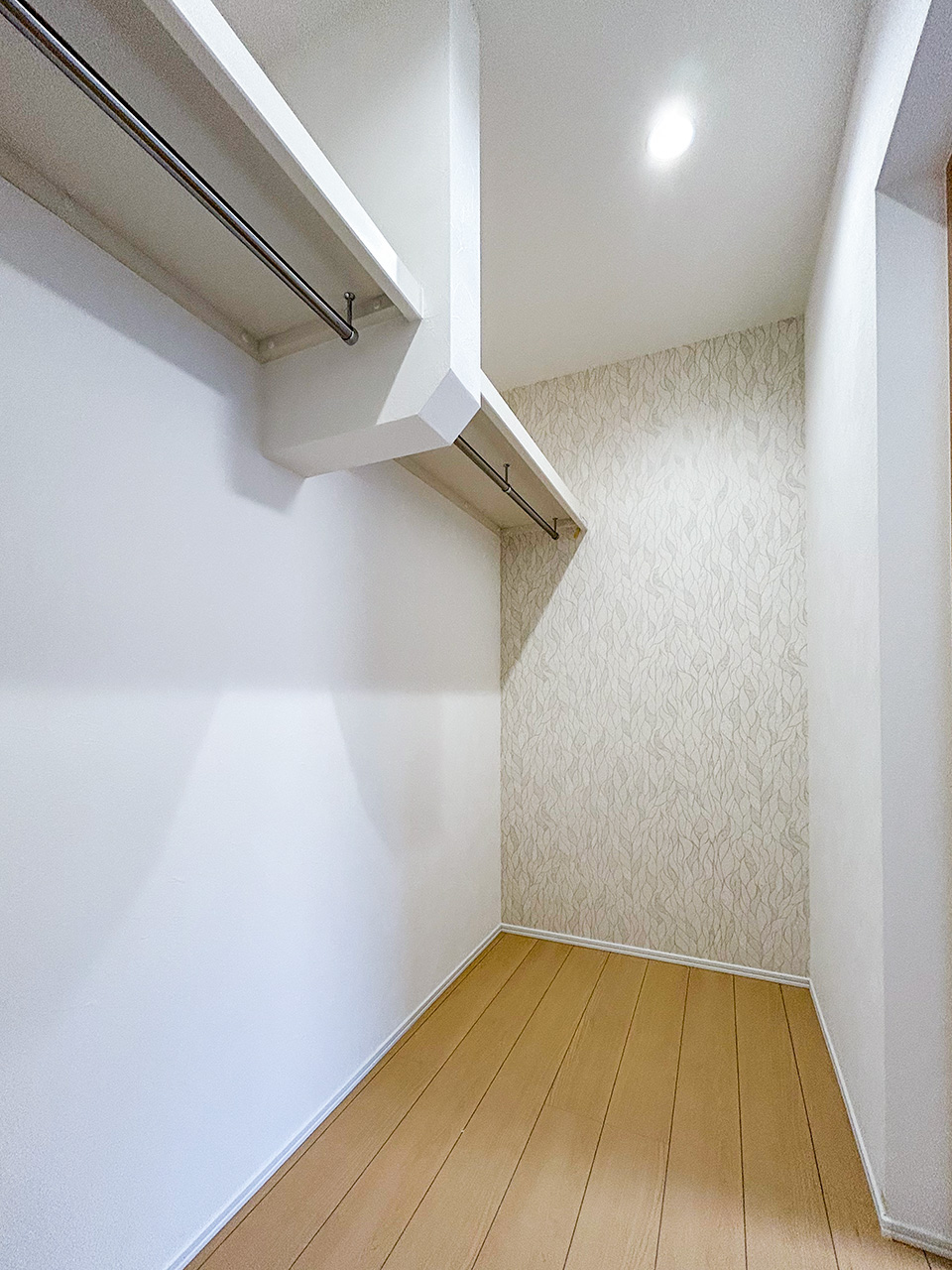 ご夫婦や子ども達の衣類をたっぷりしまえる大容量のウォークインクローゼット。季節の衣類から鞄や帽子などの小物までたっぷり保管可能。ウォークインタイプなので衣類の出し入れや整理整頓もスムーズに行えます。
