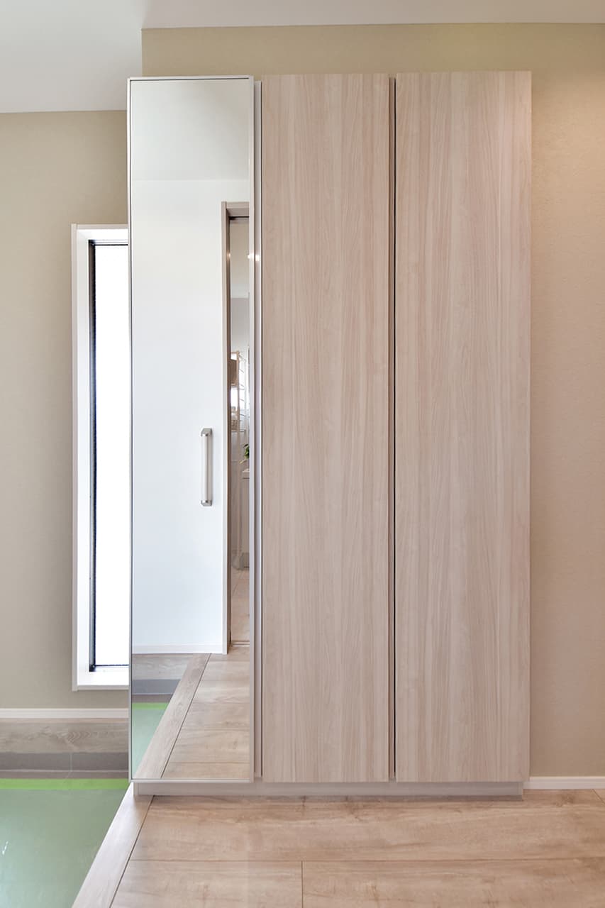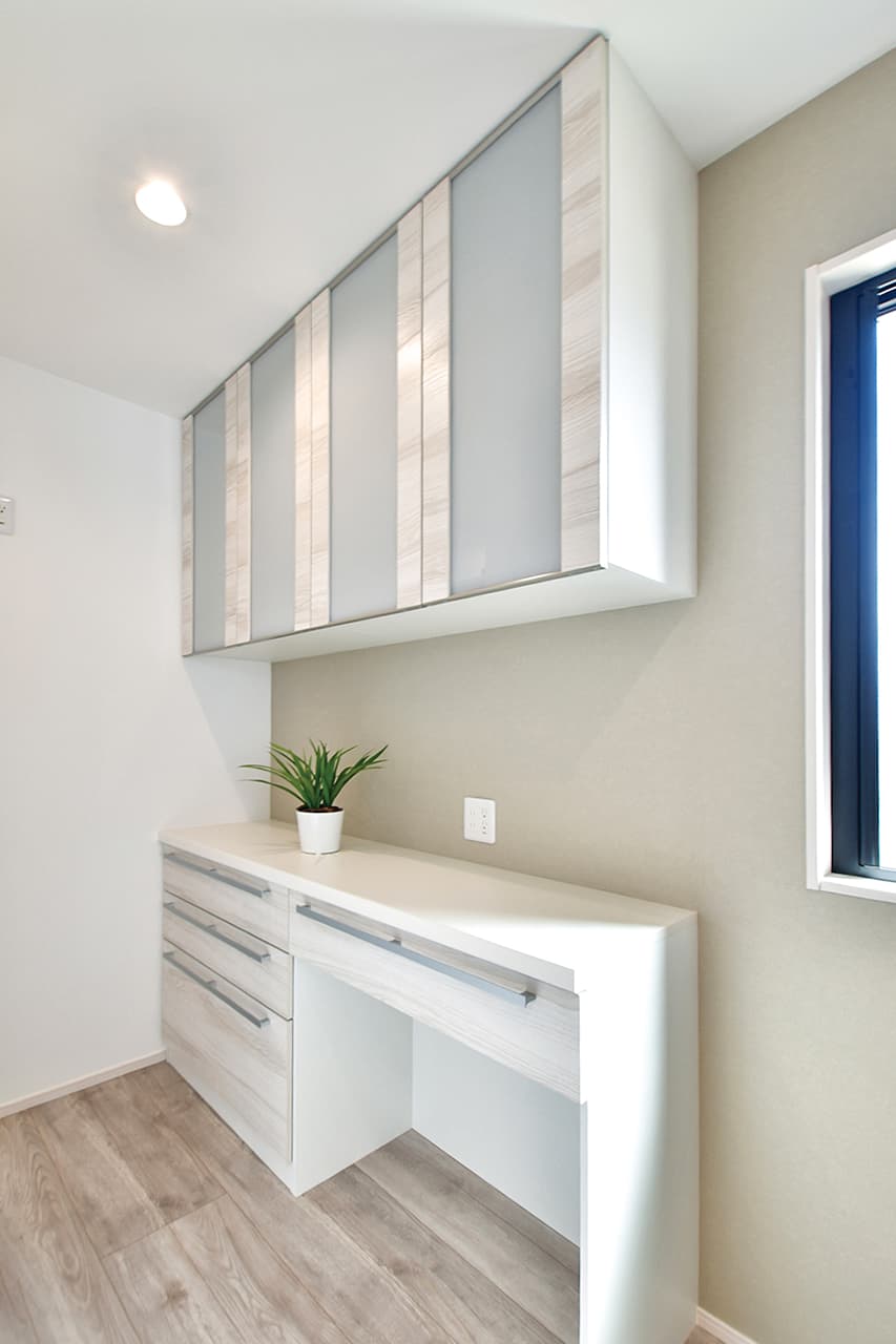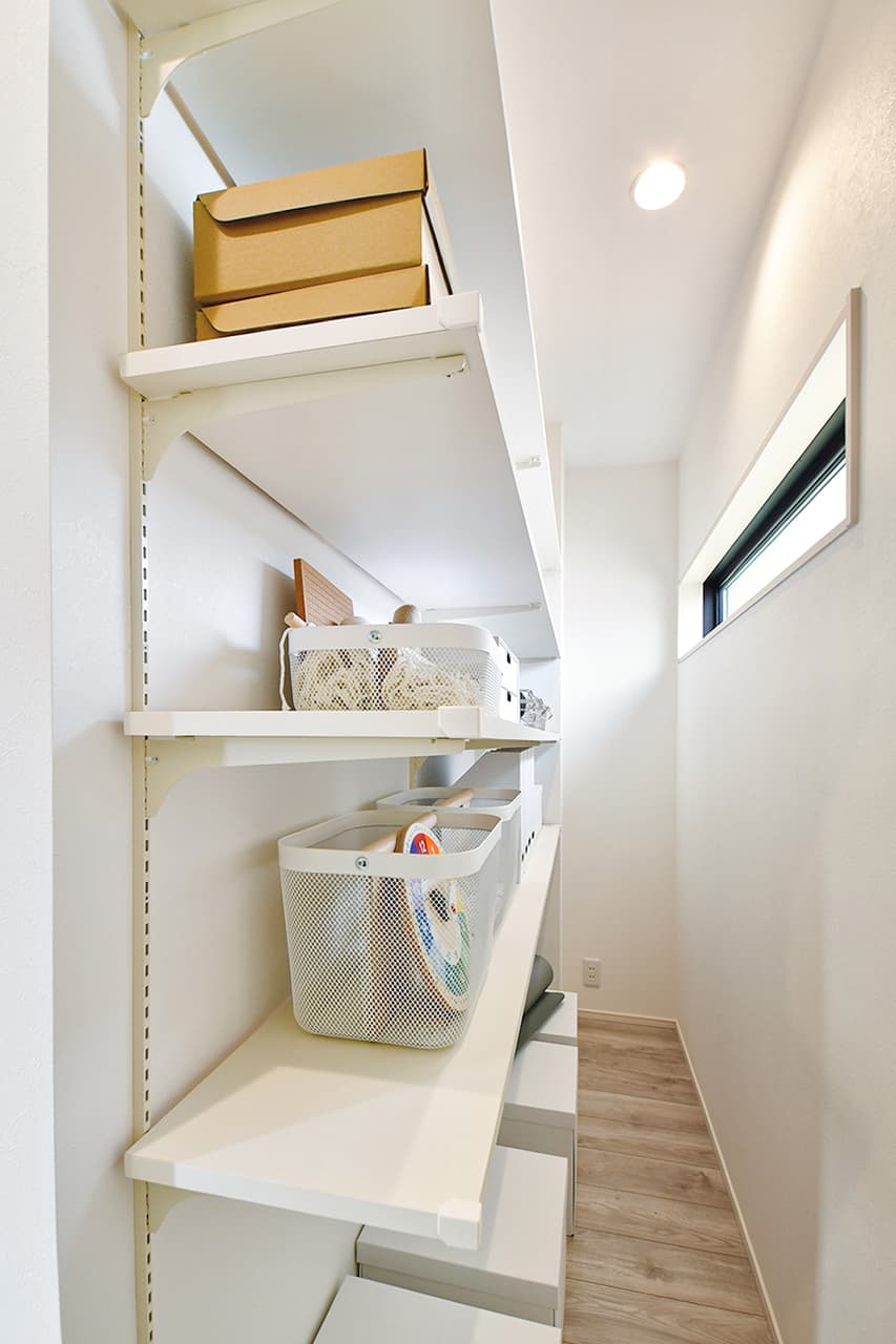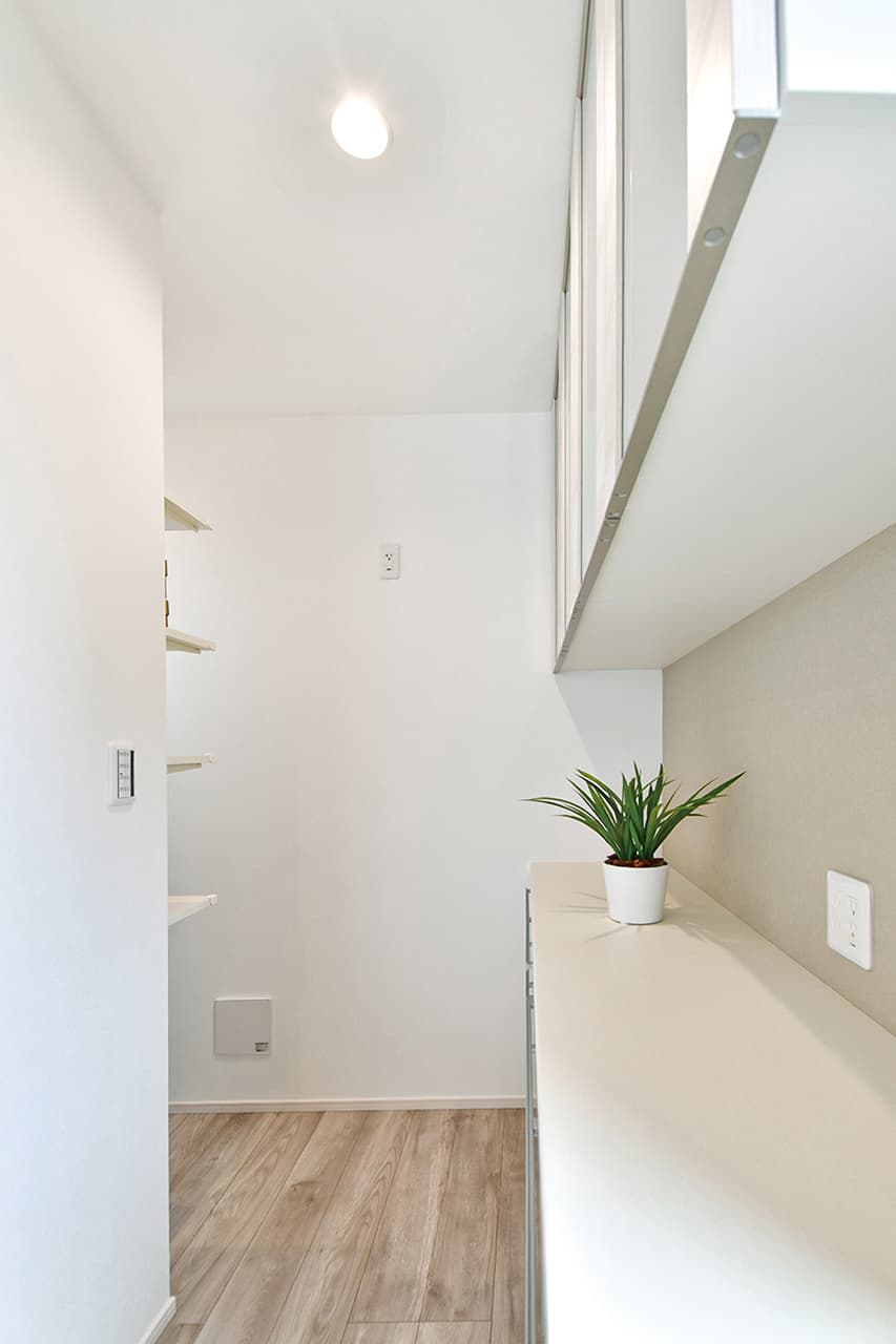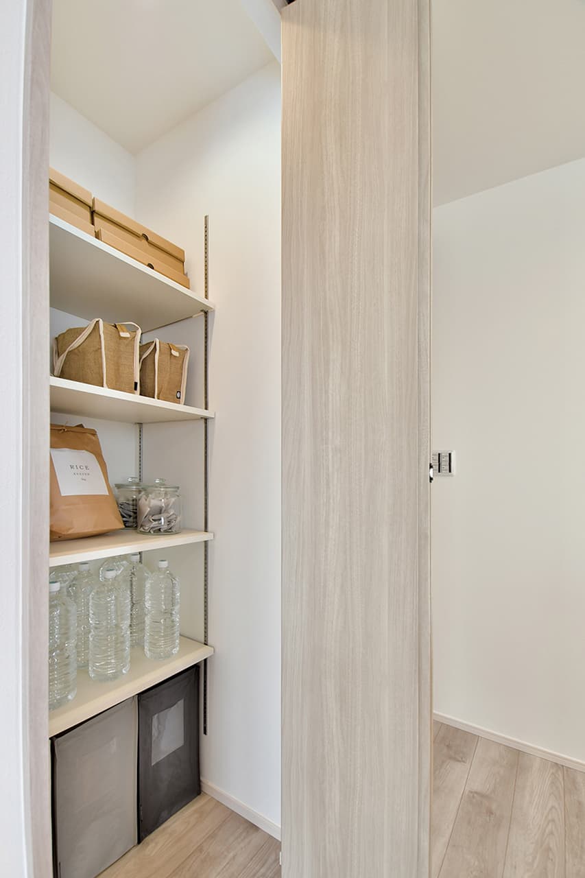 ご夫婦や子ども達の衣類をたっぷりしまえる大容量のウォークインクローゼット。季節の衣類から鞄や帽子などの小物までたっぷり保管可能。ウォークインタイプなので衣類の出し入れや整理整頓もスムーズに行えます。