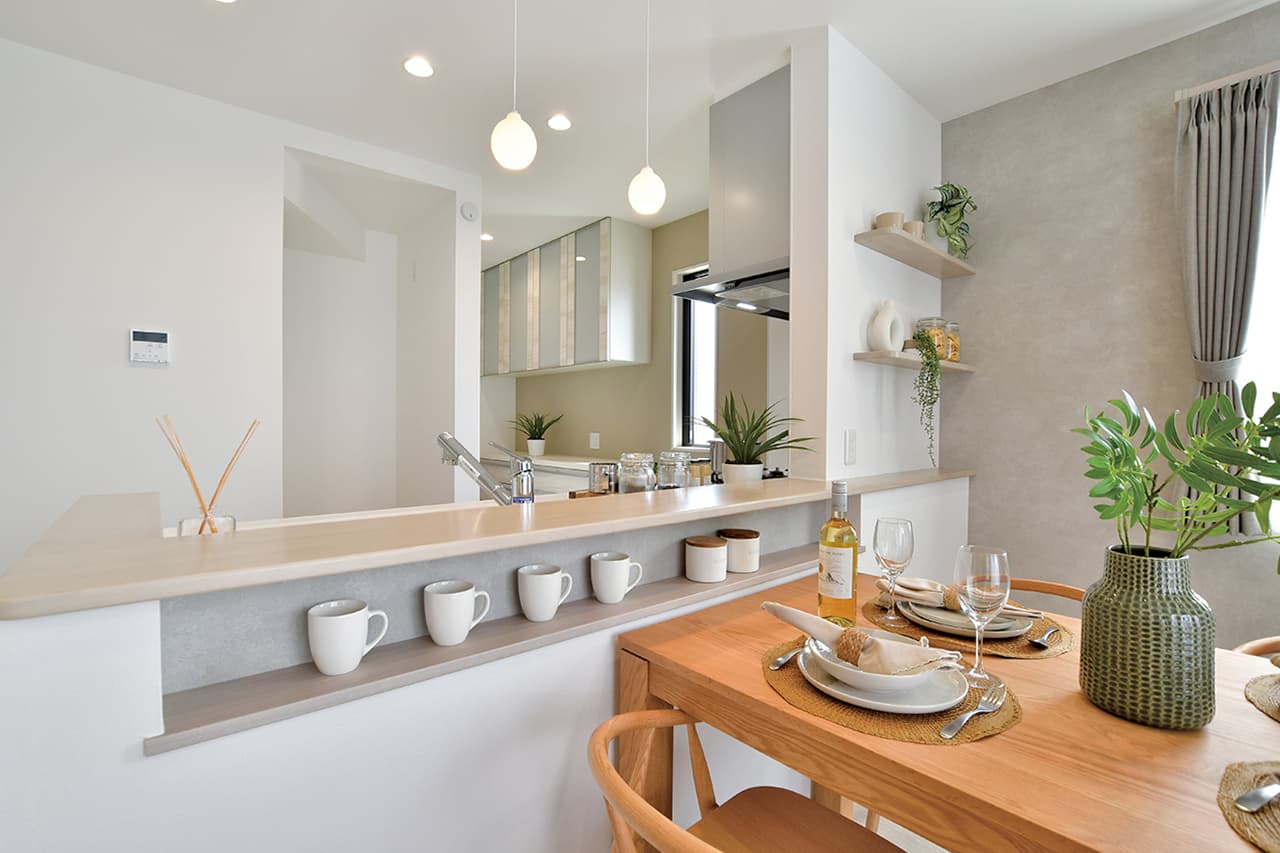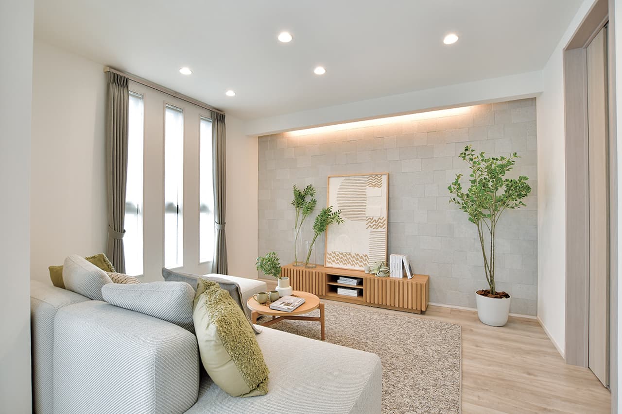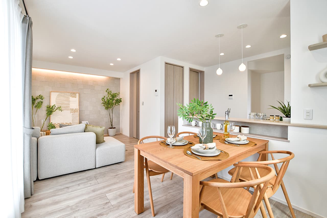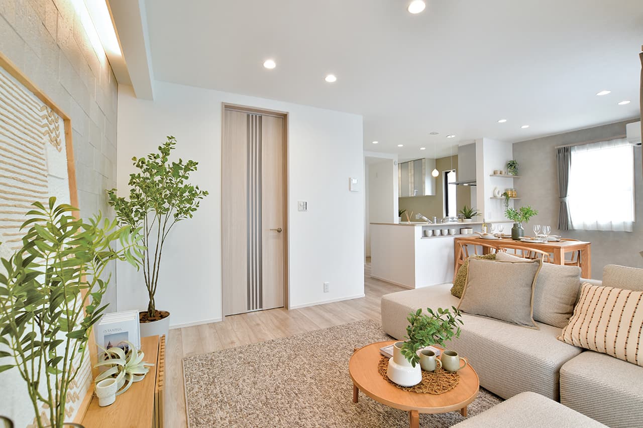 リビングという暮らしのメインスペースは、一日で家族が一番長く過ごす場所。その居心地をさらに高めるために18帖以上のワイドな広さを確保しました。広場のようなパブリックスペースがご家族の集いや団らんを心地よく育みます。