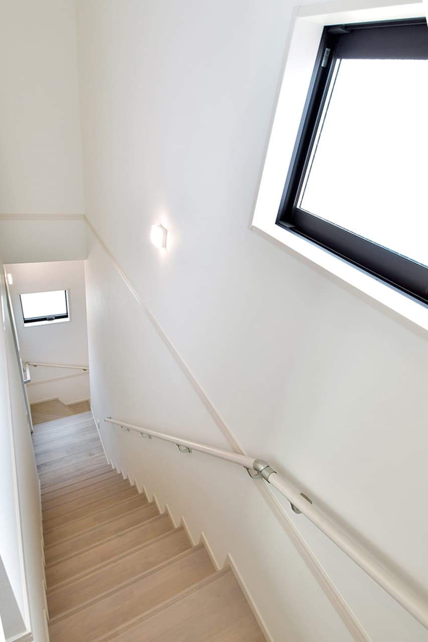 階段での転倒は思わぬけがの元となります。グランディハウスでは、ゆるやかな昇降しやすい階段とし、手すりを標準設置しています。