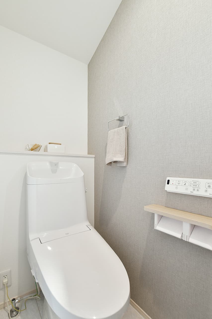 座る・立つといった動作が足腰への大きな負担をかけるトイレ。握りやすい位置に手すりを設置して、負担の軽減に配慮しています。
