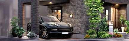 愛車を風雨や紫外線から守るインナーガレージ。作業や趣味のスペースとしても活用でき、暮らしに寄り添う便利で心強い空間です。