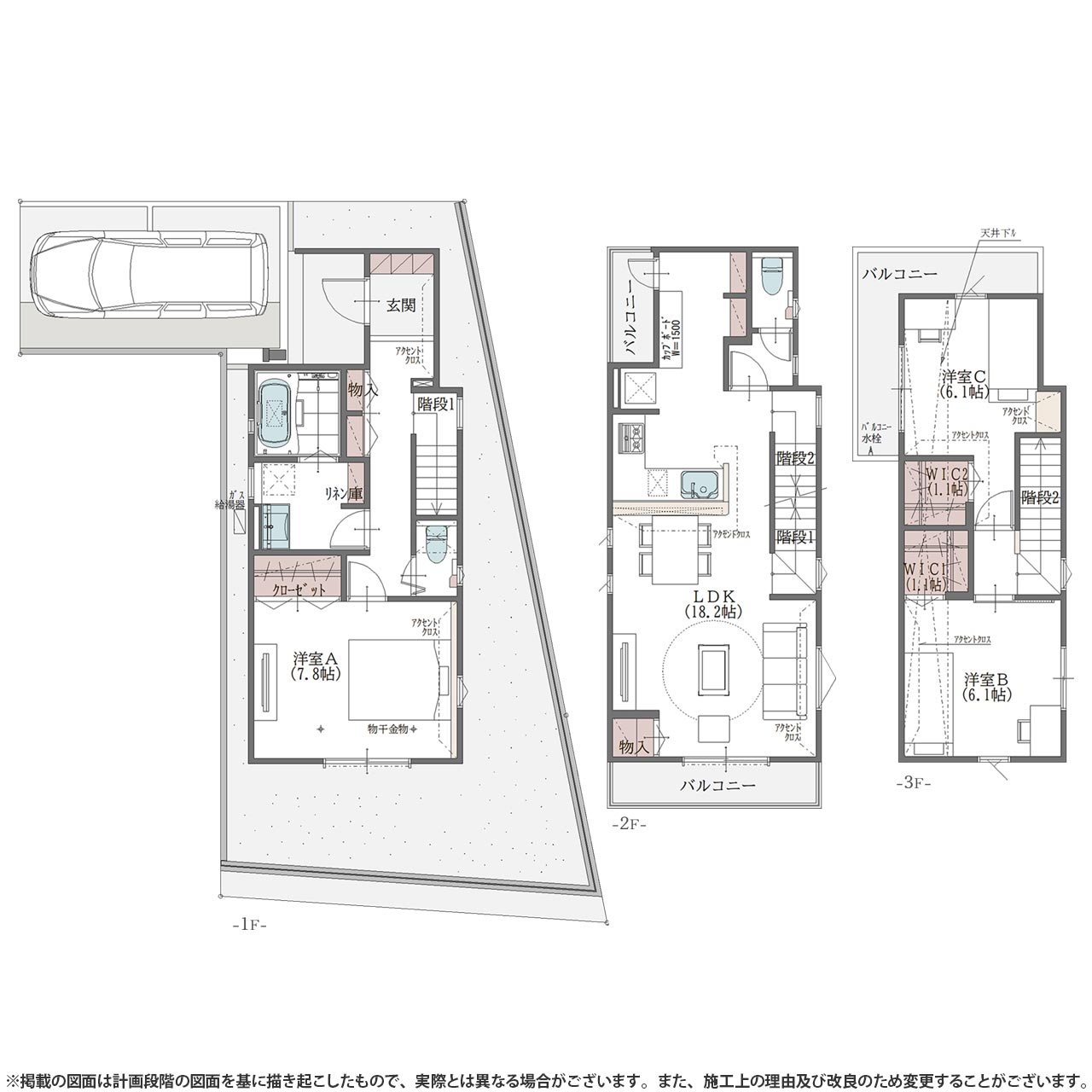 構造 木造軸組工法3階建 建築確認番号 第R07SHC110354号(2025年7月7日) 他 建物完成年月 2026年1月中旬予定、 2026年2月下旬予定