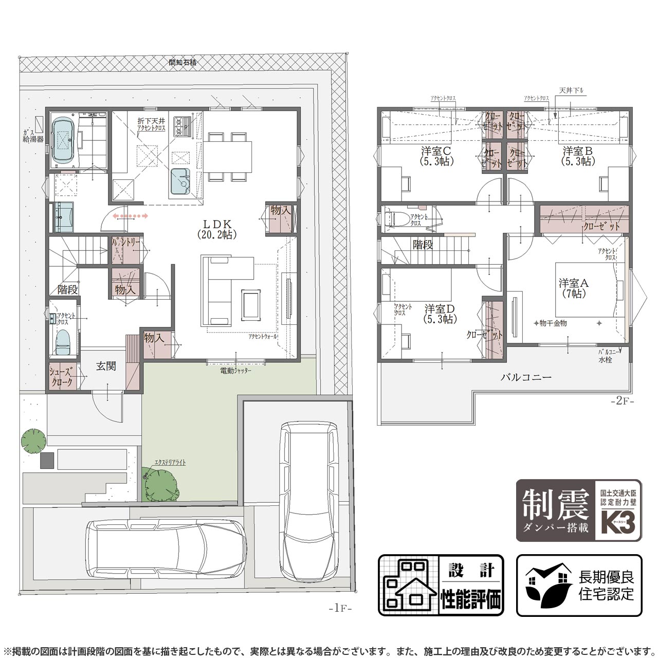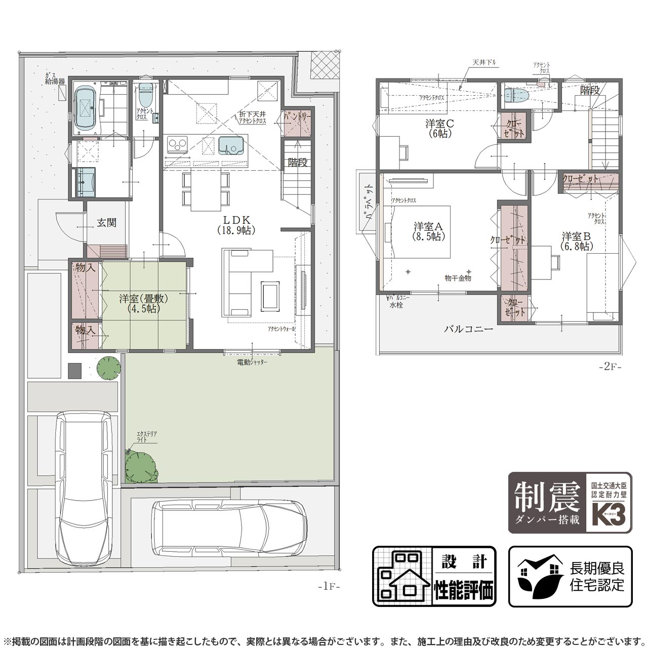 | 備考2 | ※掲載の図面は計画段階の図面を基に描き起こしたもので、実際とは異なる場合がございます。また、施工上の理由及び改良のため変更することがございます。 |