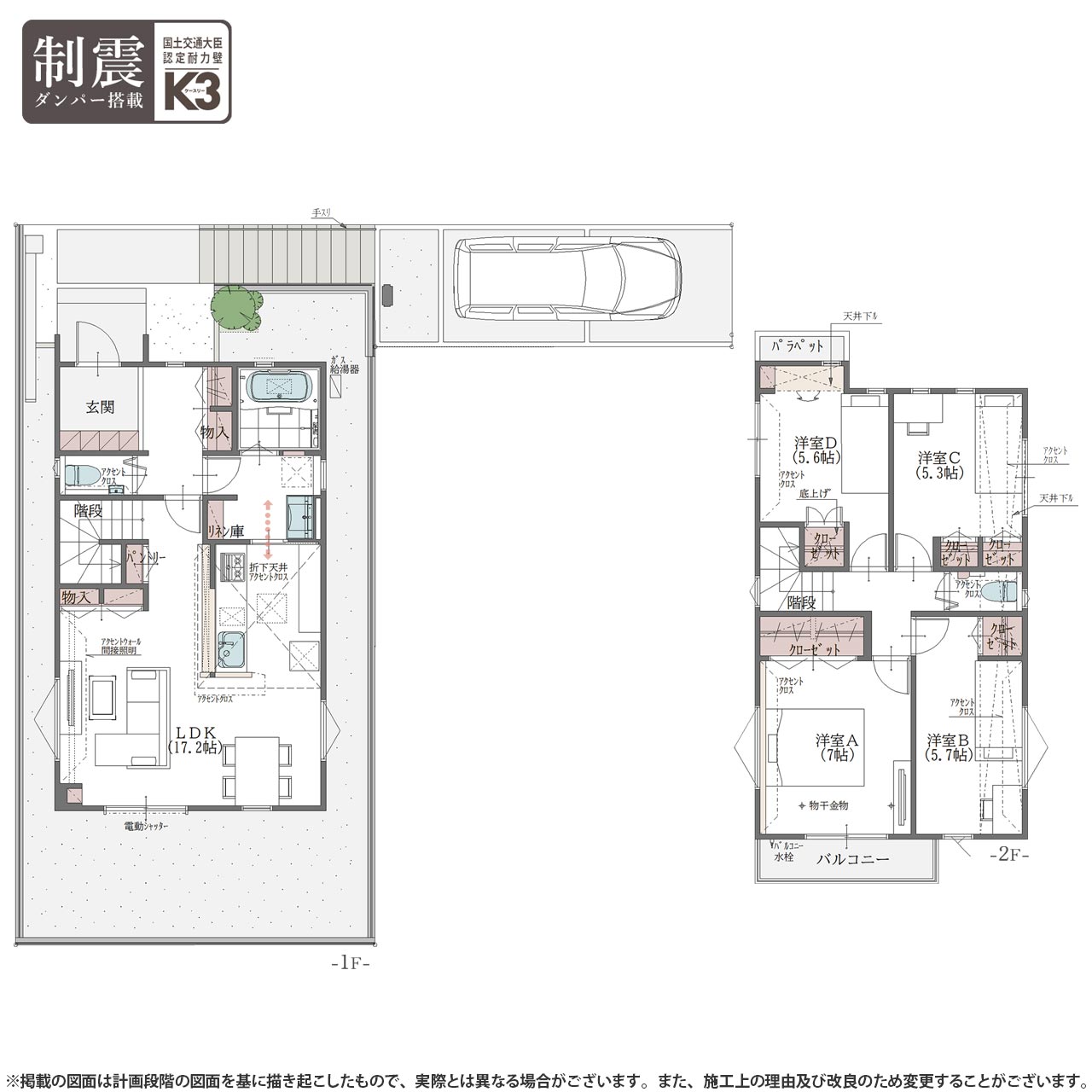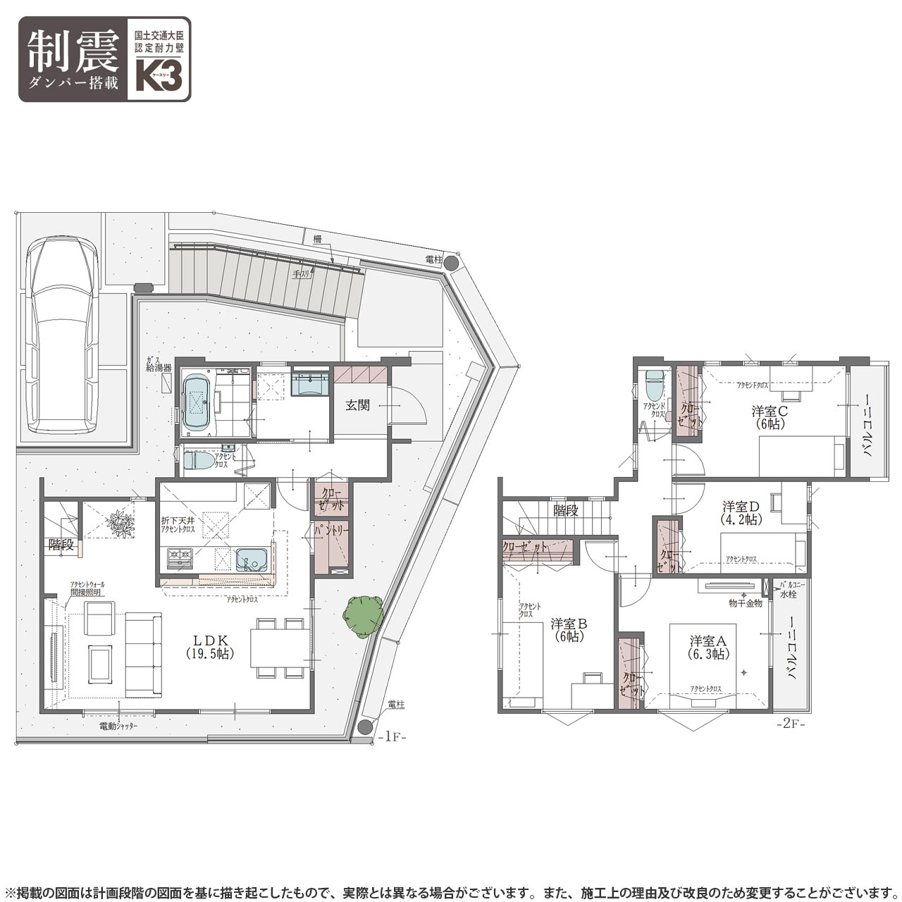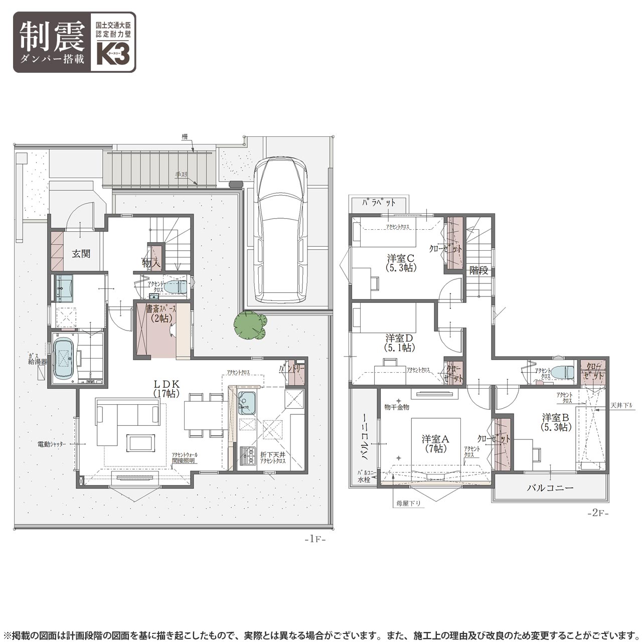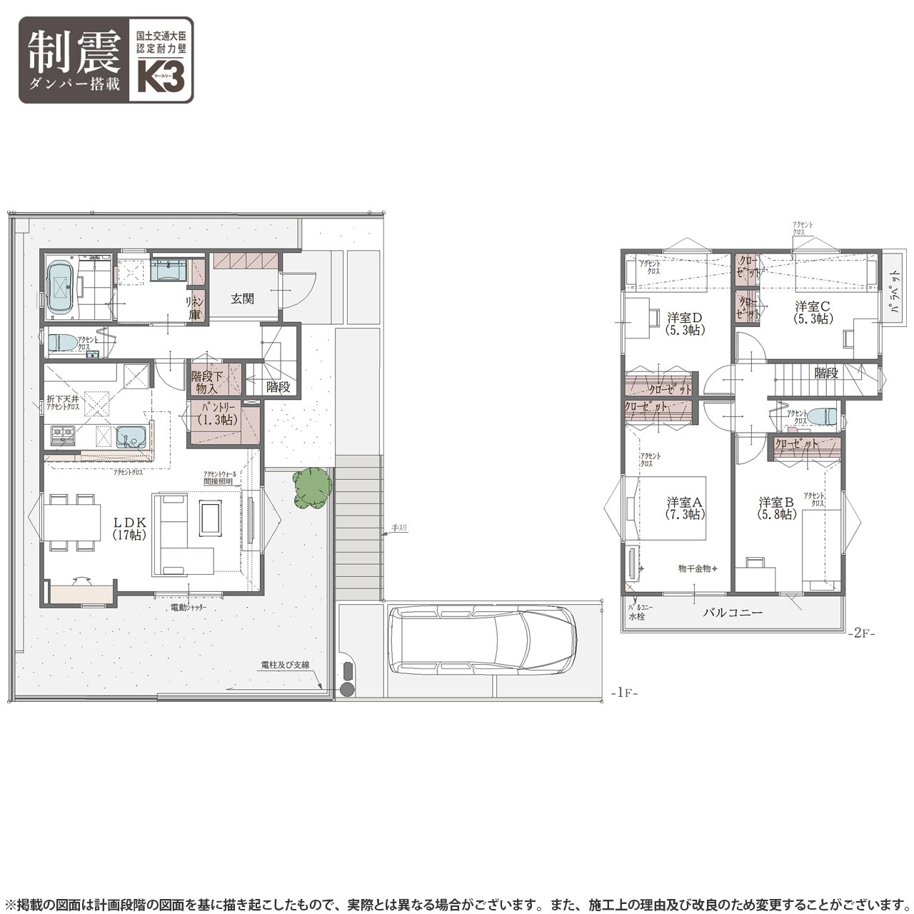 ◆全棟国土交通大臣認定耐力壁「K3」制震ダンバーを採用。ZEH水準の断熱・省エネ性能住宅。