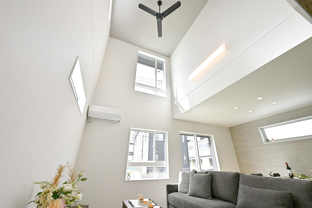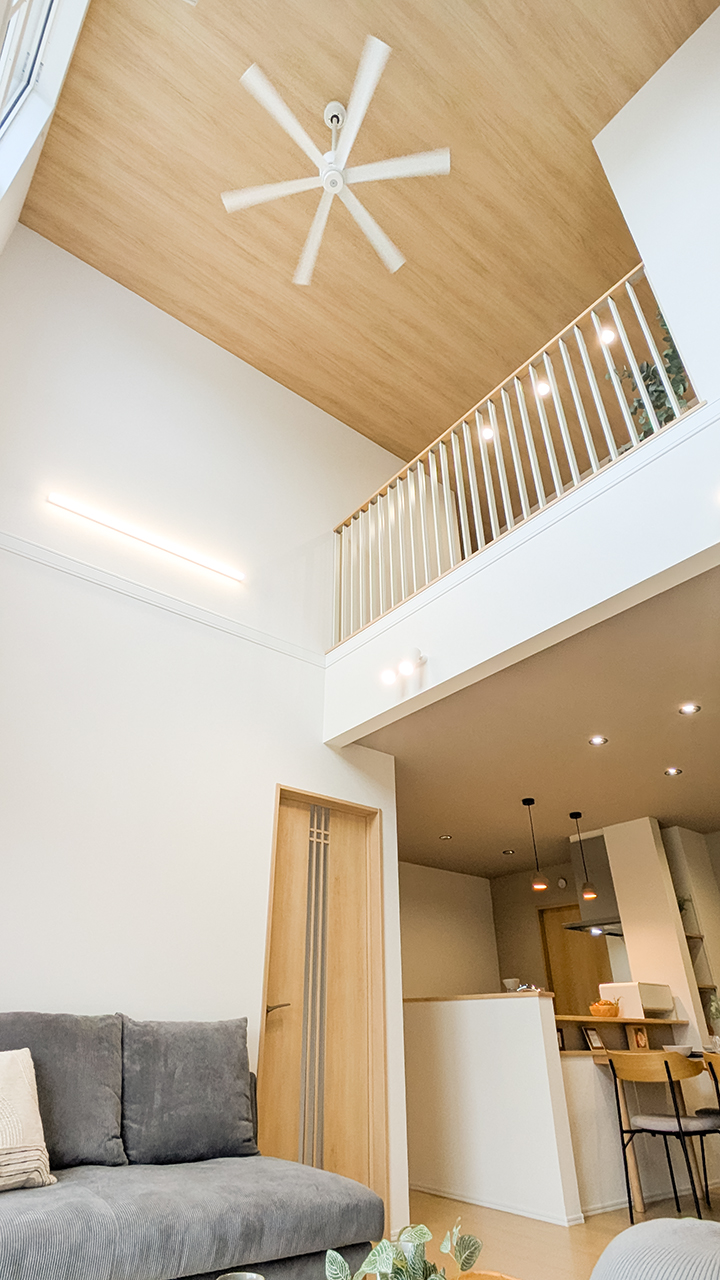 18帖超のLDKには、開放感あふれる吹抜を採用