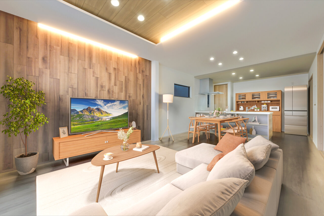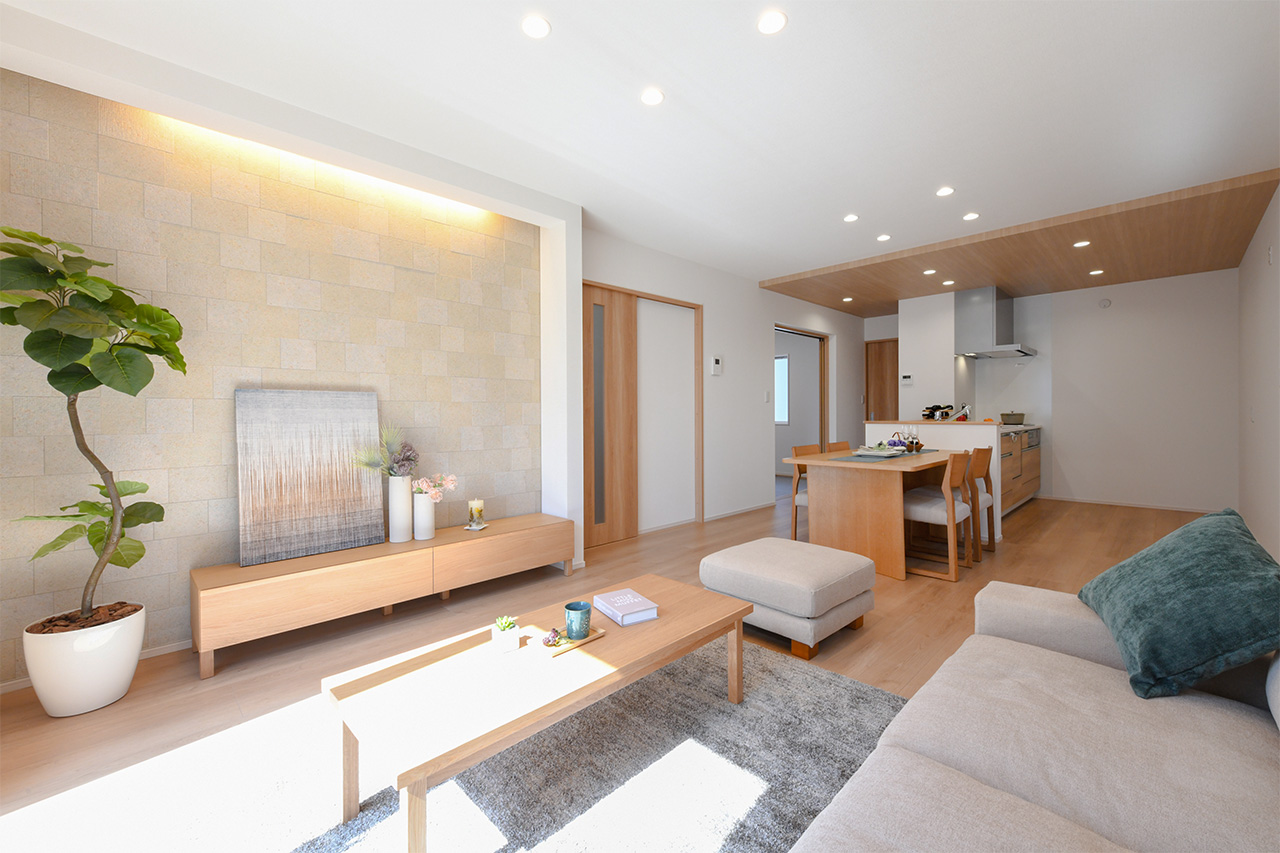 広々とした19帖のLDKで家族の団らんや来客を招いてのパーティを満喫できます