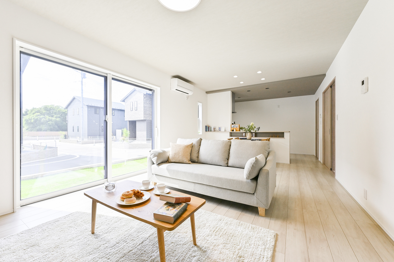 ワイドサッシを採用し、明るく開放的な空間を創出する18.5帖のLDK