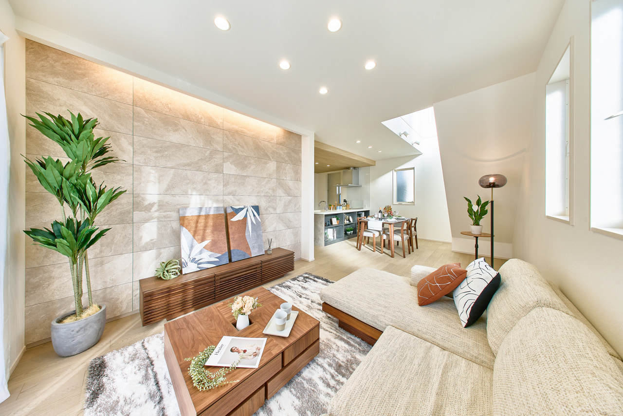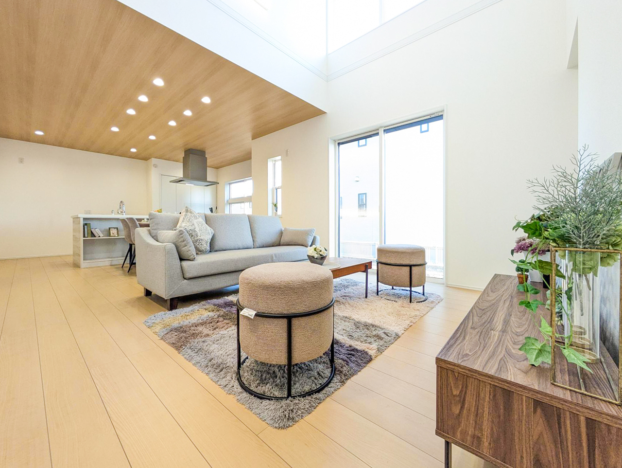 ご家族の団らんや寛ぎの中心となるリビング空間を際立たせる吹抜け天井プラン
