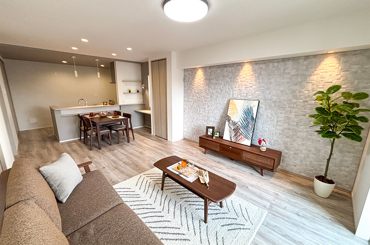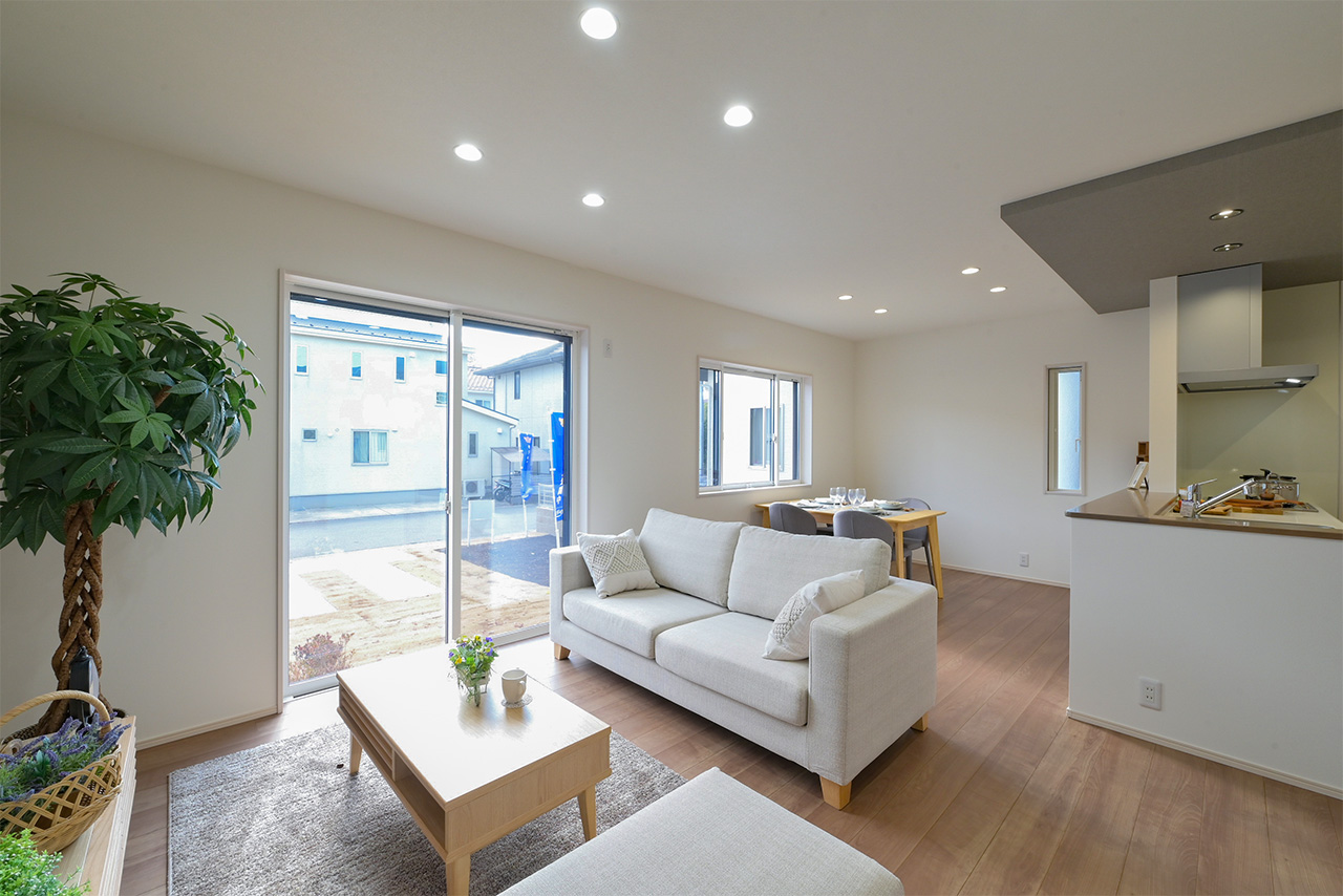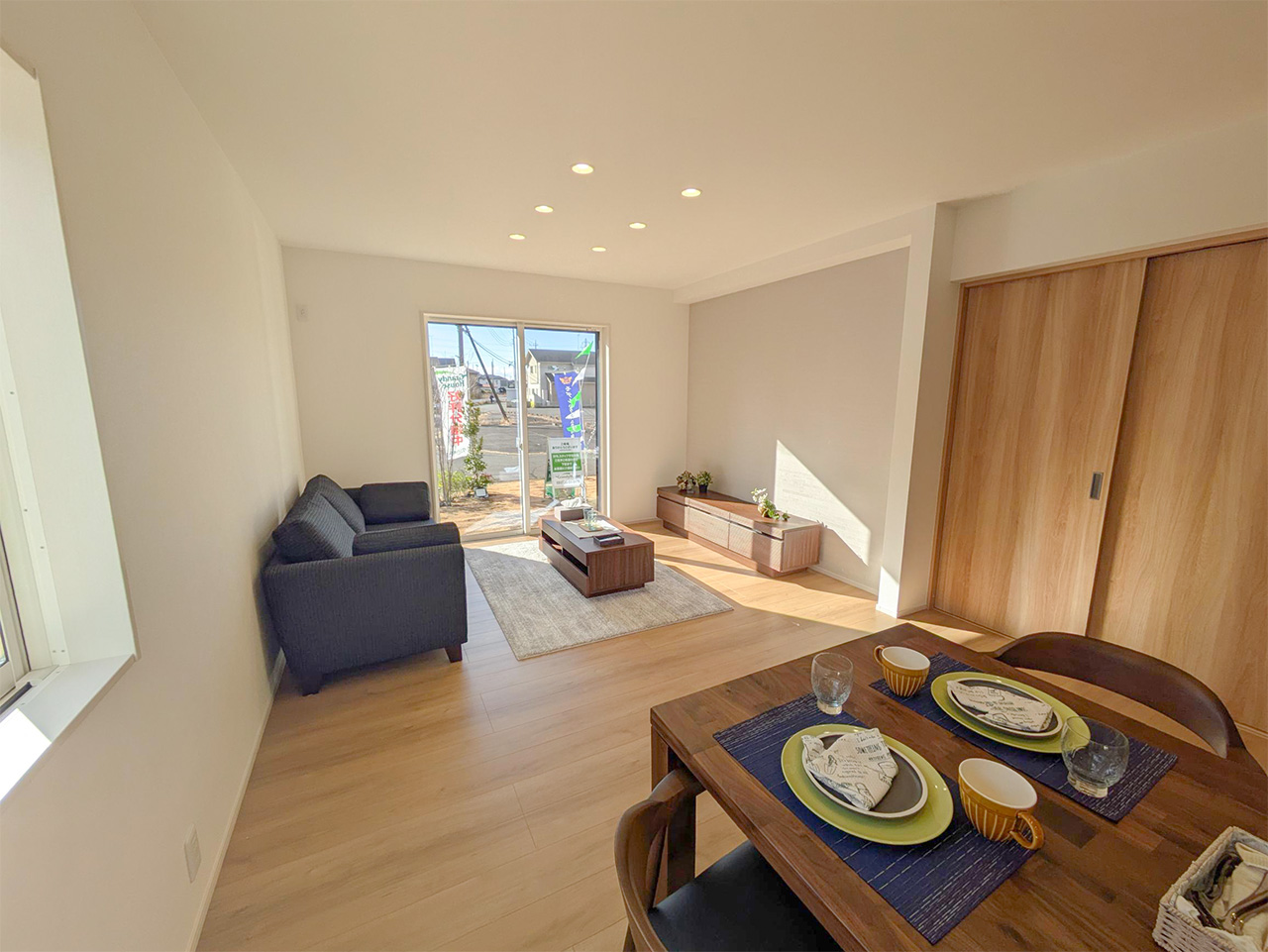 ワイドサッシを採用し、明るく開放的な空間を創出する18.5帖のLDK