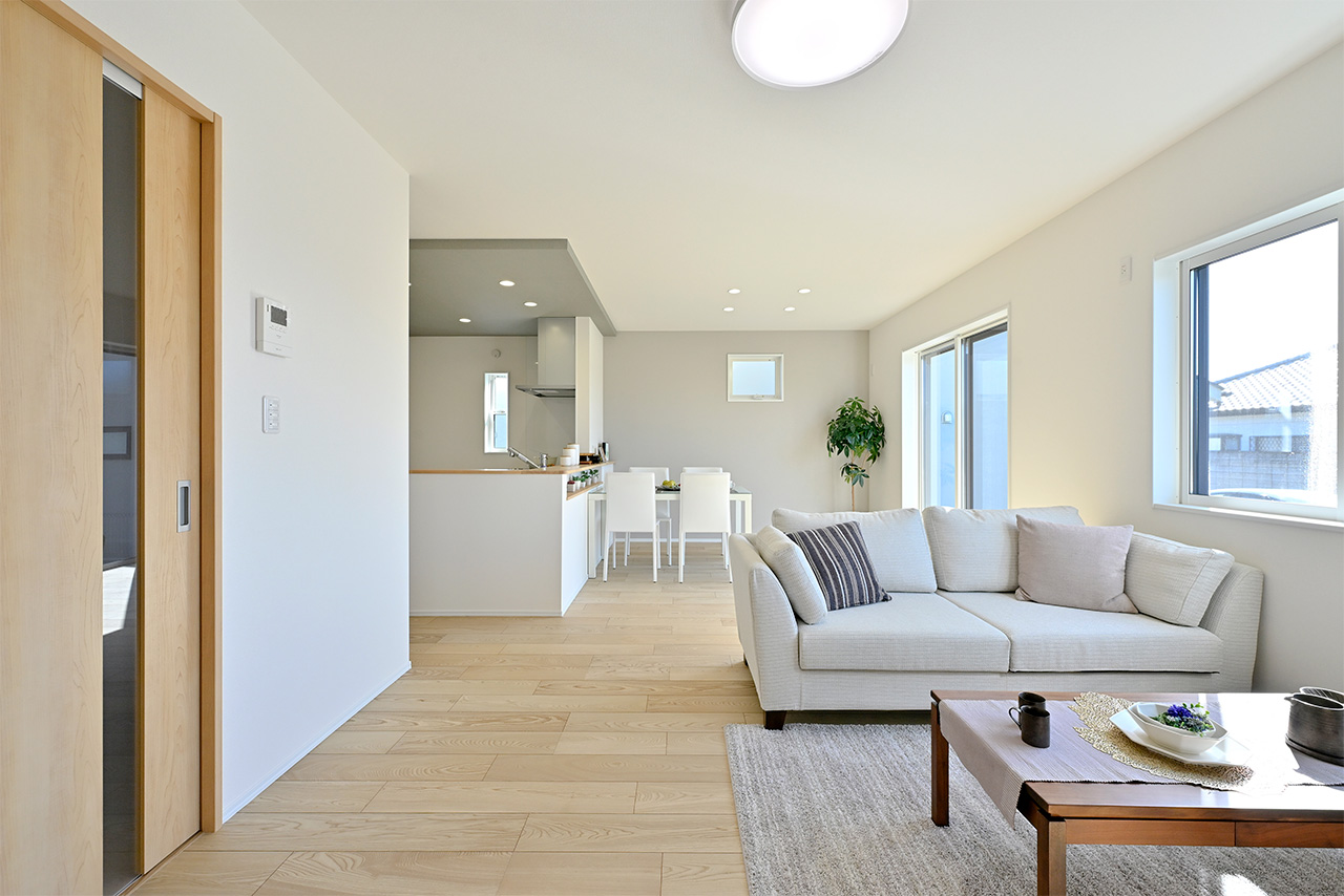 開放感あふれる19.6帖のLDKが、家族の団らんを育む住まい