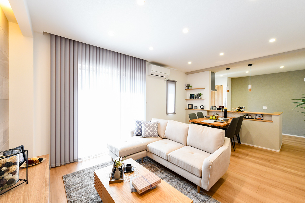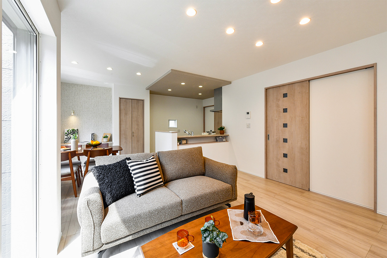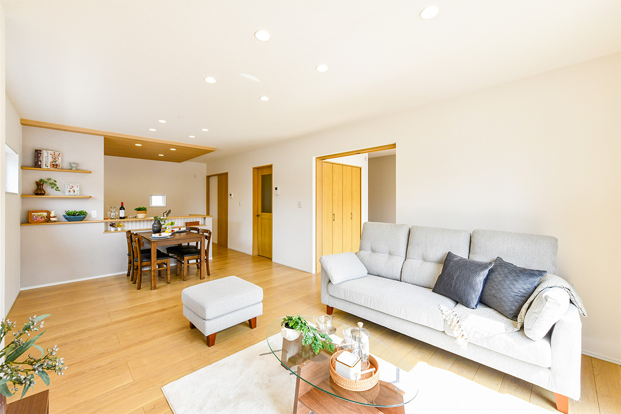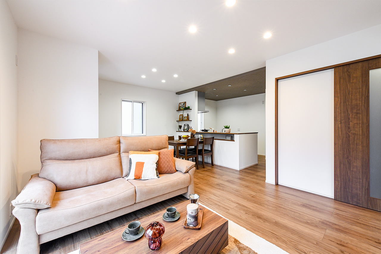 19帖の広々LDKとカフェ風カウンターが日常にくつろぎを添える、豊かな時間を育む暮らし