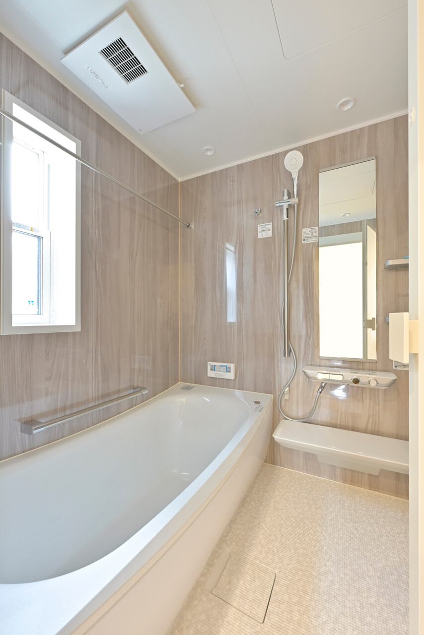 雨の日も気にせず洗濯物が浴室内に干せる浴室換気乾燥暖房機を標準装備。時間も天気も気にせず干せるからとても便利。また、浴室のジメジメした環境から発生するカビも抑えることができます。