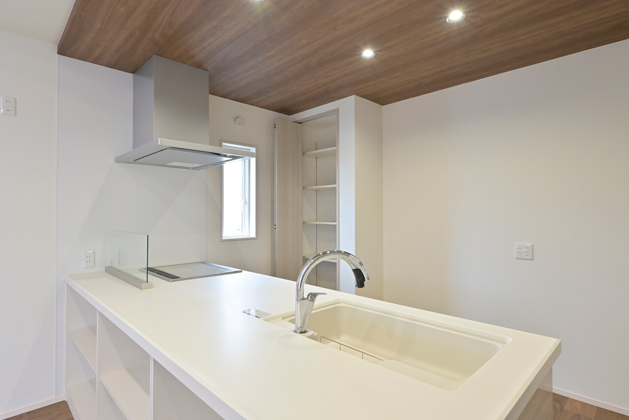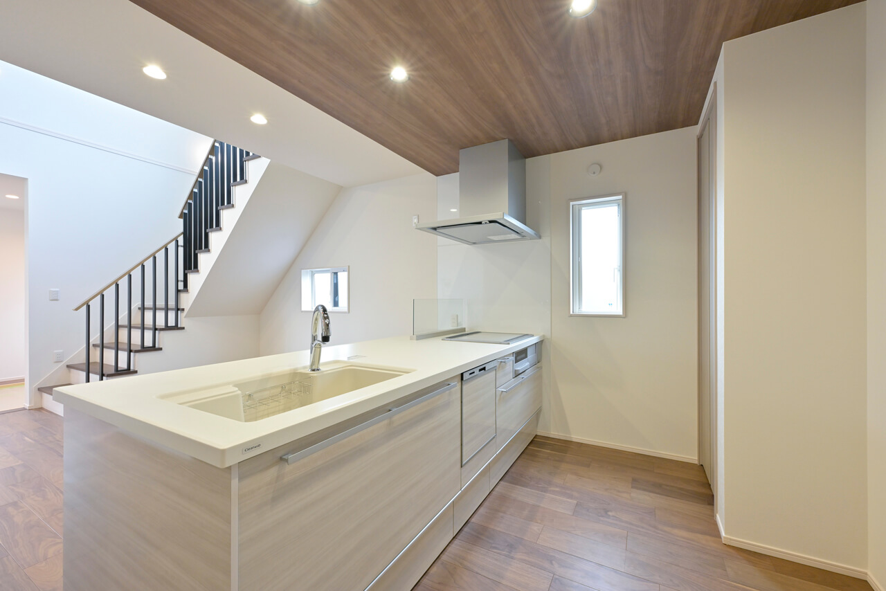 LDK空間の広さをより実感できるオープンキッチン。開放的で目線を遮るものがなくコミュニケーションが取りやすいため、料理をしながらの会話も弾み、お手伝いにも気軽に参加できます。