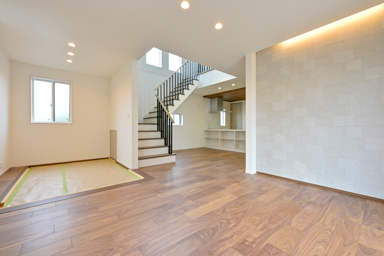 18.7帖のLDKと寛ぎのタタミコーナーが隣接する住まい