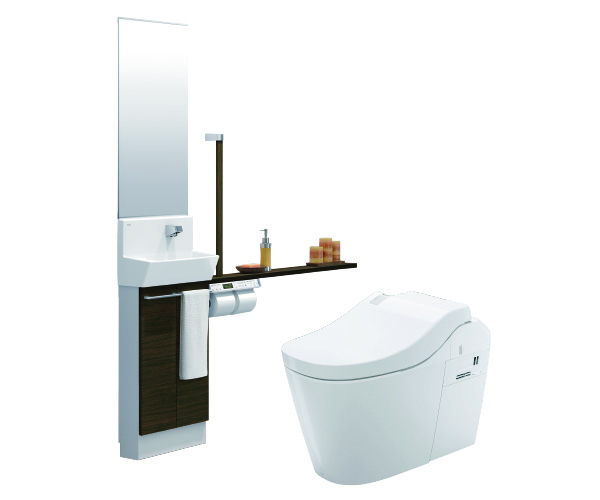 壁や浴槽と離すことで、カウンターの奥や側面、カウンター下の壁際まで手が届き、お掃除が簡単です。