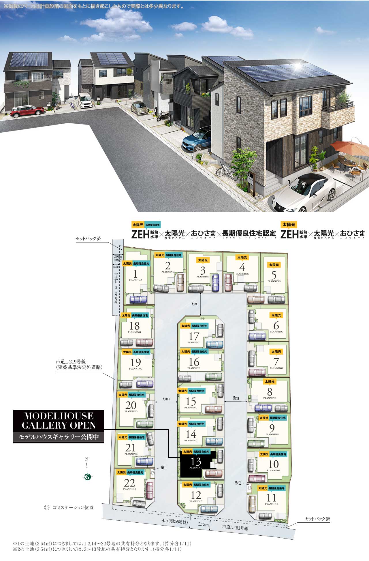 販売区画図※2/3.54㎡持分各1/11(3〜13号地)